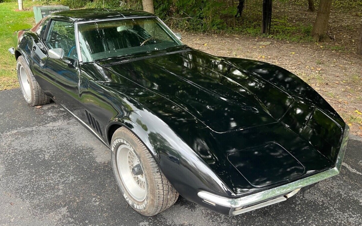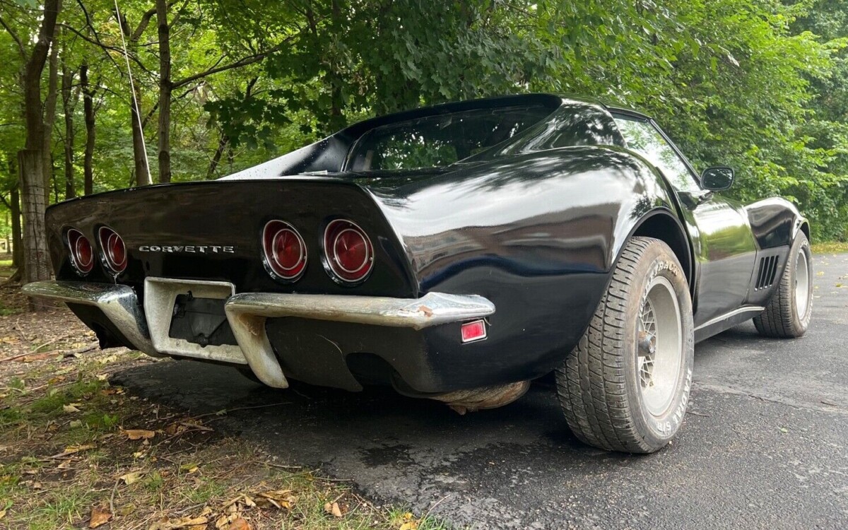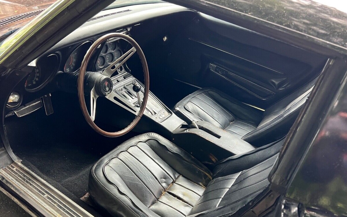 The seller bought the Corvette about a year ago and tells us that prior to his ownership the car had sat in a dry storage area since the late ’80s. He says most of the fiberglass is in good condition, though there are a few areas that will need minor repairs to fix some chips. Originally the car was blue and at some point in time was painted black, and while the finish doesn’t look all that bad I’m not sure the respray was a 5-star quality job when it was applied, or maybe it’s just that the hood area looks a bit faded. In any event, if you’re just looking for a driver, perhaps the exterior may present acceptably as it is for the next owner.