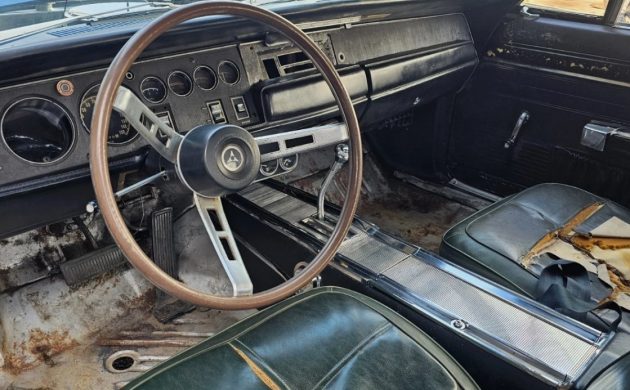 The seller may be a Charger expert of sorts and says the body on this is the nicest he/she has ever seen. That’s a bold statement, and the only corrosion you might find is around the back glass in the tunnel. So, you won’t have to buy any replacement sheet metal when you set out to restore this Dodge. The original paint was gold (not blue), and the car once had a black vinyl roof covering.