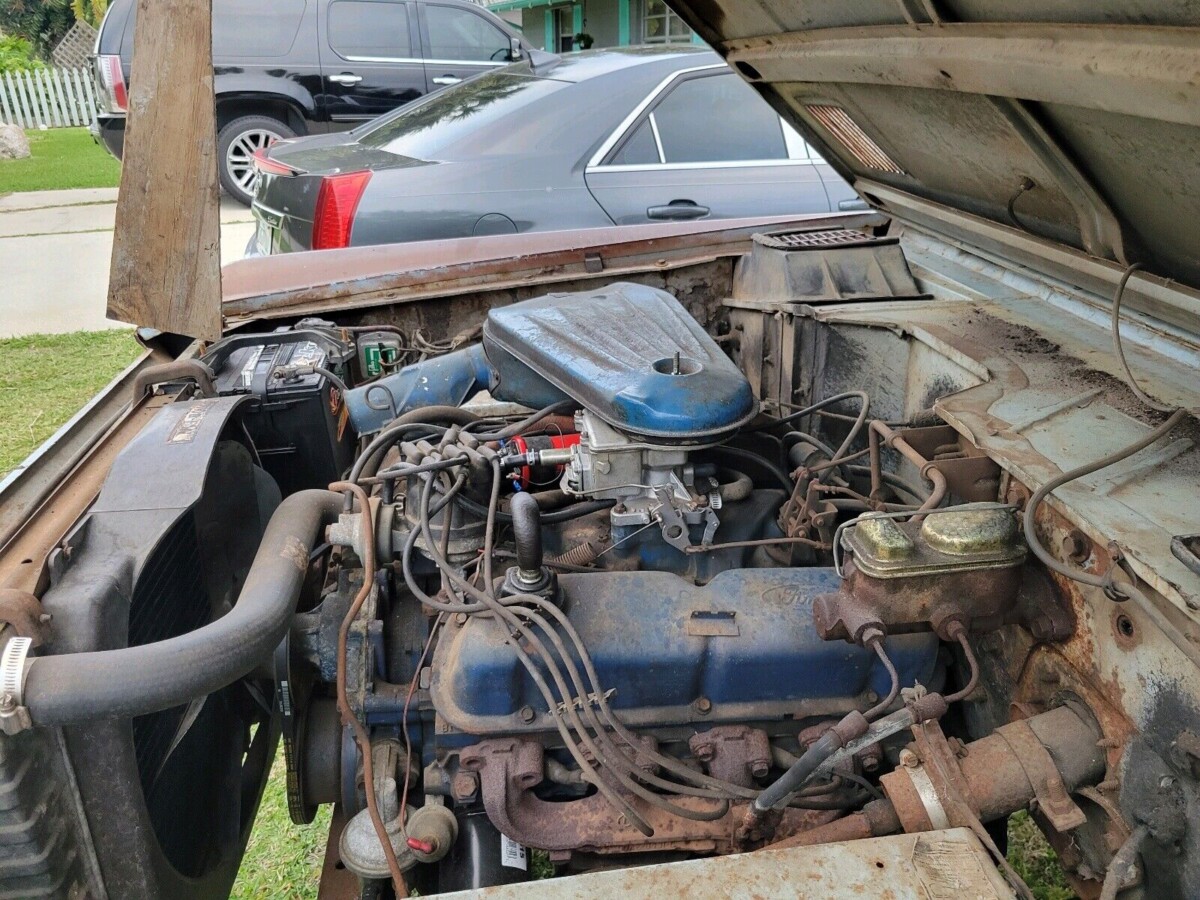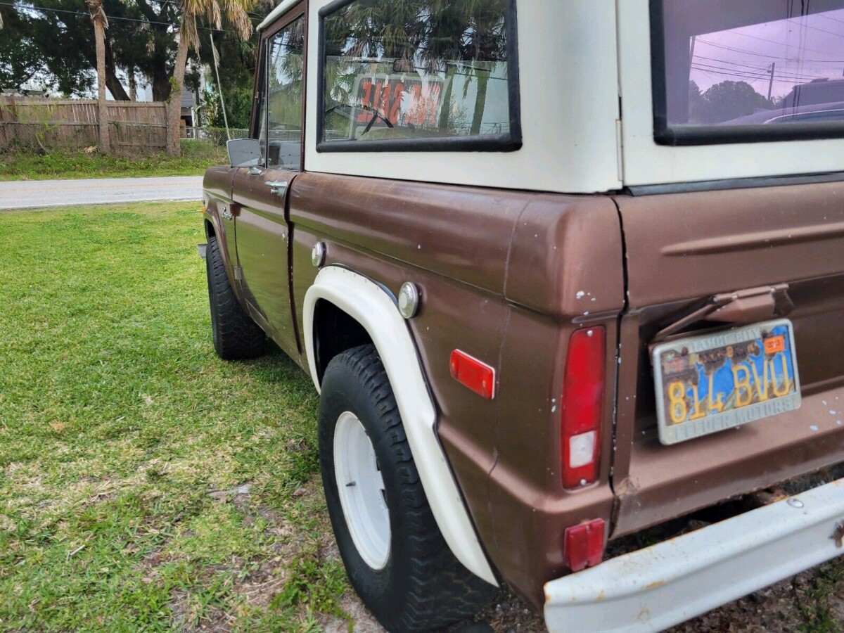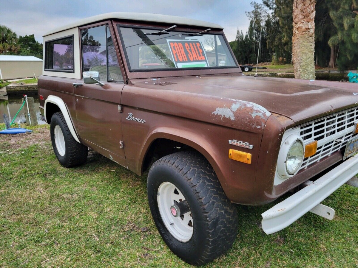 The Bronco’s interior is a mixed bag, but there are no issues requiring immediate attention. Some painted surfaces wear the same “attractive” Brown that graces the exterior, and stripping it away would be a wise first step on the restoration journey. The front seats look acceptable, although the back seat needs a new cover. The dash pad is cracked, but replacements are cheap and easy to find. The rubber mat is excellent, and apart from a floor-mounted shifter, there are no aftermarket additions. It isn’t loaded with optional extras, but it is nice to see the factory AM radio is intact.