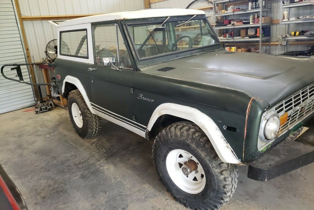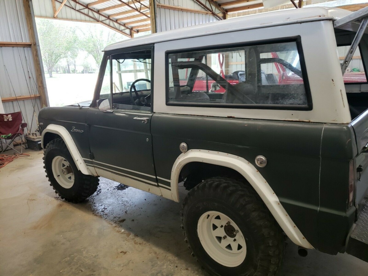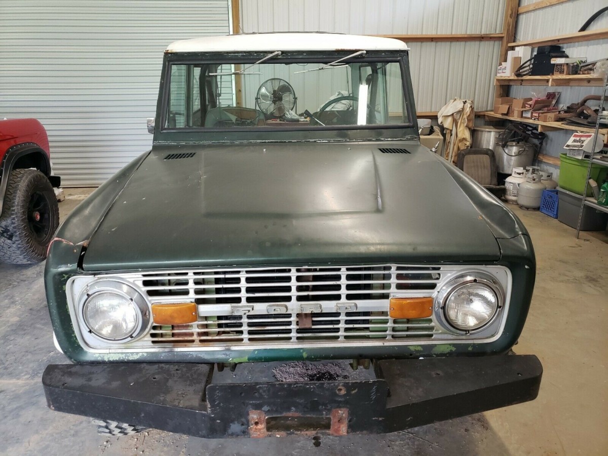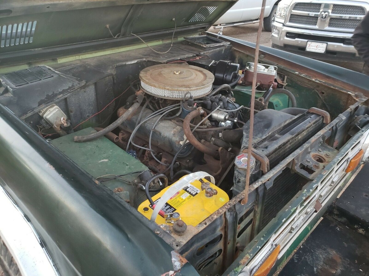The first thing to note about this Bronco is just how solid it is. Rust can be the mortal enemy of these vehicles, but this one shows a lot of promise. The owner admits that the front floors have been patched, and while it is serviceable, he feels that replacing those completely would probably be a wise long-term move. The rear floors are said to be solid, which is more good news. The panels look to be free of problems, while the same is true of the rear corners of the engine bay where the inner wheel housings meet the cowl and firewall. The doors open and close as they should, and the panel gaps appear to be fairly consistent. The Bronco started life finished in a color called Village Green, and evidence of this can be seen in a few spots around the vehicle. There are a few non-standard additions to the Bronco, and the one that will probably annoy purists the most is the fact that the fenders have been cut to fit bigger wheels and fender flares. It would be possible to rectify this, and as a bit of a guide to the sort of expense involved, high-quality lower rear quarter panels can be found for around $95 each. The other obvious non-original item is the bumpers, but correct reproductions are readily available.
