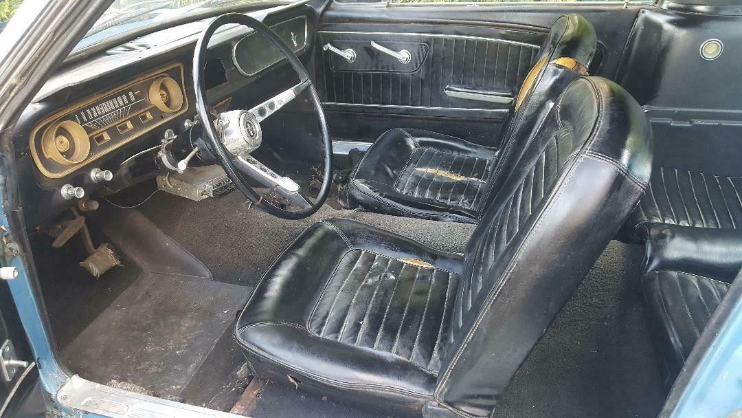 When this Mustang rolled off the production line in 1965, the engine bay would have housed to 200ci Thriftpower straight-six engine and a manual transmission. It now houses a 302ci V8 and an automatic transmission. Given the current lack of a carburetor, it would be stating the obvious to say that the car currently doesn’t run. The owner doesn’t say whether the engine turns freely, but I would be surprised if they would drop in an engine that required any major work. Still, stranger things have happened. One notable upgrade is the fact the car now has new disc brakes on 5-lug hubs. The original 4-lug hubs remain on the rear.