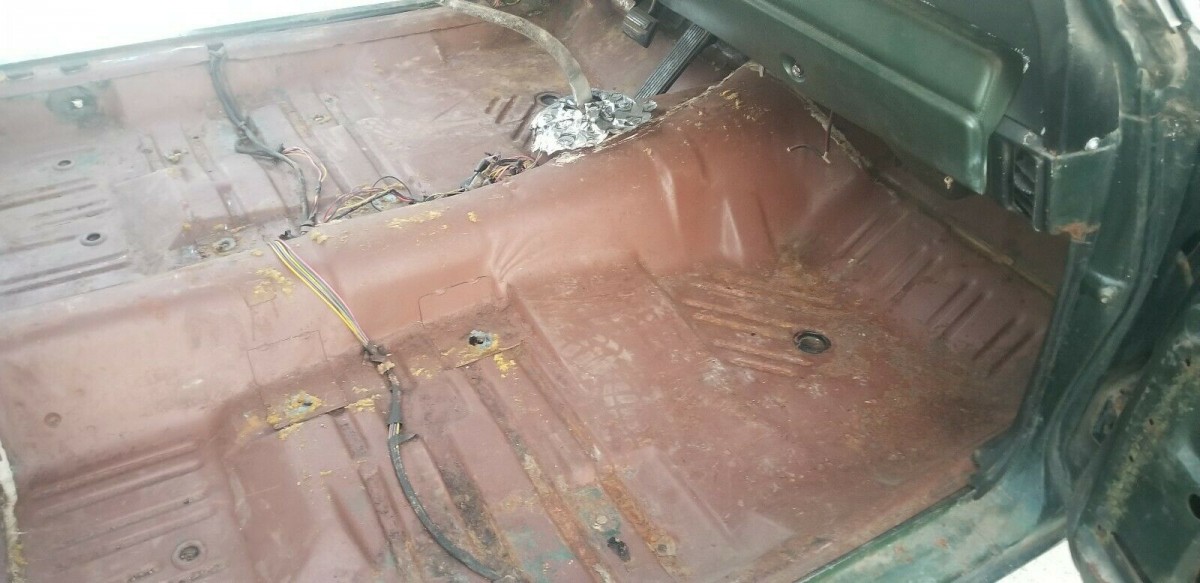 In spite of what you can see in this photo, the majority of interior trim components are actually present. It looks like the next owner will need to source a dash pad, carpet set, headliner, and new covers for the seats. The rest of the trim items actually look like they might be quite good with a decent clean. One disappointing aspect is that the dash has been cut at some point to fit an aftermarket stereo, so the next owner will have to decide what to do with that issue. Getting back to the positive news, the Charger does feature power windows and factory air conditioning. What you can see in this photo though, is just how clean and solid the Charger’s floors look.
