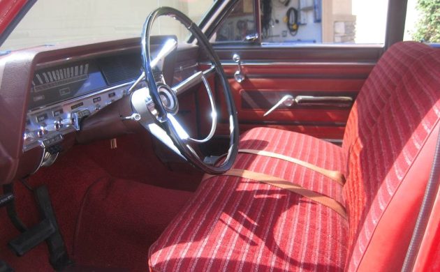 I can’t recall seeing many red station wagons growing up in the 60’s, but I’m liking the Antigua Red paint job on this Rambler wagon. I’m not spotting any rust and its seller (who is 85 years old and “desires to sell the wagon at the firm price listed”) claims the car has had “no body putty or accidents.” The glass, chrome, trim, and badging all look good and I like the way the dog dish hubcaps look on the red rims. I also like the shiny “Aunt Edna Roof Rack” atop this Cross Country which Rambler described as “standard on all 1965 Classic Station Wagon models, spectacular in appearance, and provides extra carrying capacity.”