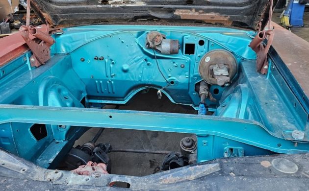 A restoration was already started, but we don’t know what the game plan was, as the frame and engine compartment have been painted turquoise (check out the photos; am I wrong?). The car does retain its original 3.54 Dana 60 rear end and gears. This looks like a solid restoration candidate as these Chargers demand a premium today, in almost any condition.