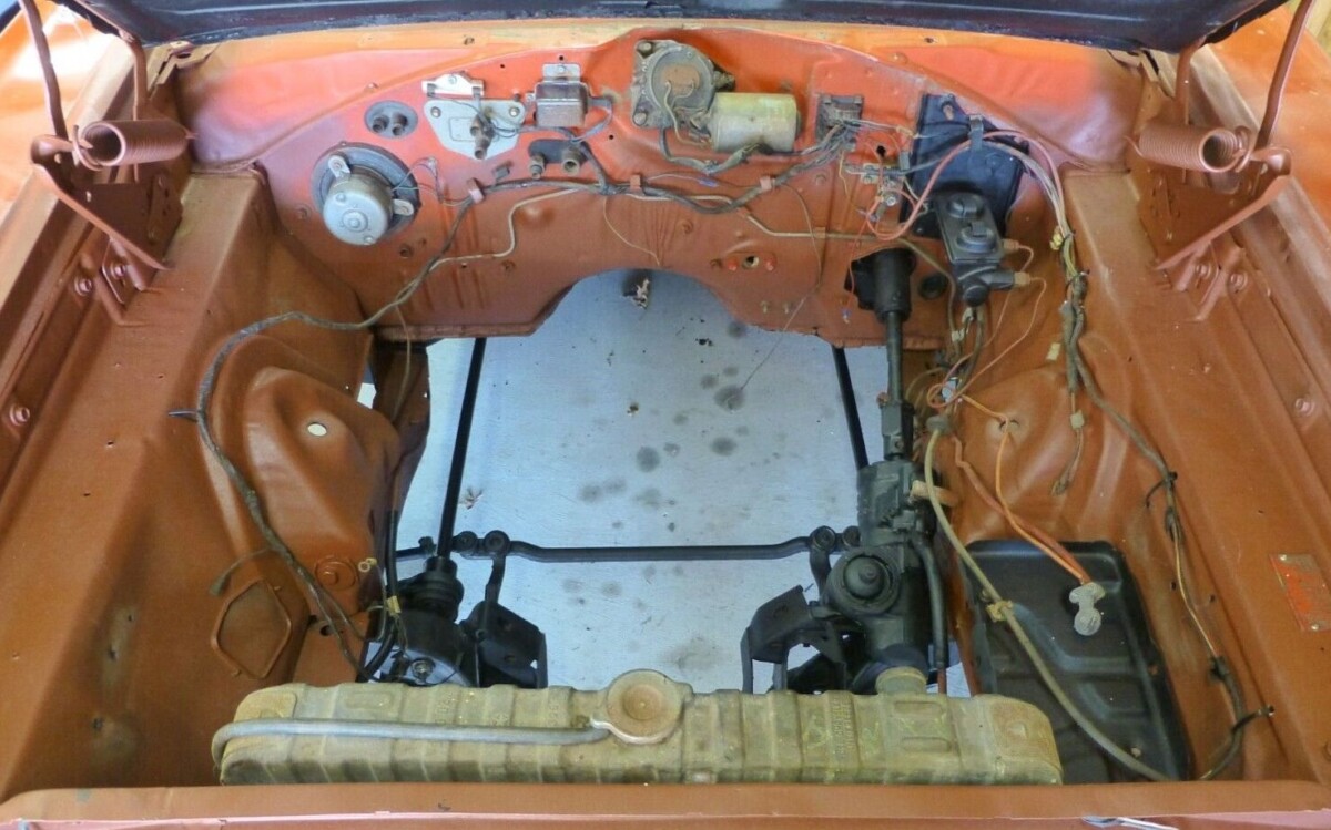 It seems this Dodge was originally equipped from the factory with a 383 and an automatic, but both components are now gone, with the seller claiming to have no idea where they went, so they were obviously MIA before he acquired the car. The good news is the engine compartment appears to be in pretty good order, so if you’ve got a 383 or maybe a 440, things are probably not all that far from ready to drop it in. The driveshaft is gone too, but hopefully, the rear-end gears are still intact.