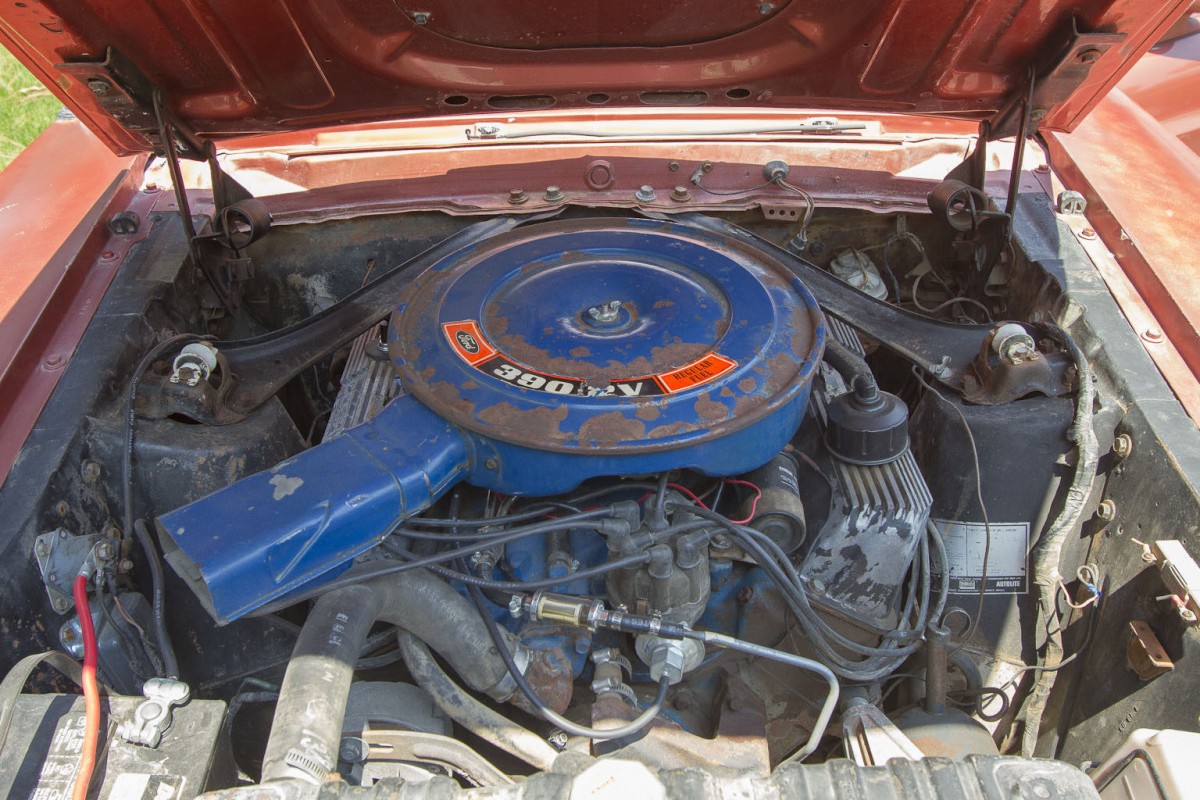 I did a double take on the air cleaner lid, as the ‘2V’ is slightly blocked by rust. Then wondered if they did have 390-2V option on any Mustang. Here is a link for all you curious and un-schooled in Ford engine letter codes (I was): https://www.mustangreloaded.com/mustang-engine-codes/
