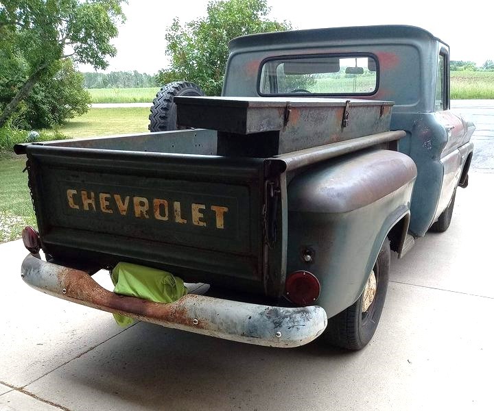 When I first moved to North Carolina in the early 70’s, I spent years searching for a 62 to 66 SWB Chevy or GMC truck with a 6 Cylinder engine with a 3 on the tree transmission. Met a lot of farmers who would sell theirs to their neighbors for $300. For me they wanted $1300!! Finally found a 64 with the 250 cid engine and a 3 on the tree. Problem was it was a 3/4 ton long wheelbase stepside with 2 piece rims. The price was right so I took it. Was told the engine had recently been rebuilt……..yeah right! Every week I had to fill it with oil and check the gas! It did have power steering and an AM radio. The truck had been painted 4 times and not primed between costs of a different color. However, it started and got me to work! With the help of co-workers I found a nice Chevy 292 cid with a 3 speed manual transmission. The wood bed was shot, but it got fixed with treated 2×4’s. Someone swapped me a set of painted while deep dish Chevy rims for my 2 piece rims. Even found an FM converter to help with music. I drove that truck for about 10 years til a man who made granite footstones made me an offer I could not refuse! I had about $750 in the truck and he put $4000 cash in my hand! Told me he had been looking for a 3/4 ton with a V8 but would be happy with a 292! I still miss that truck and occasionally see it. He painted it brown and painted his company logo on the doors.