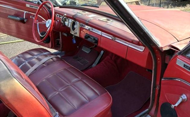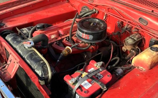 At the heart of the seller’s little drop-top is Chrysler’s venerable 225 cubic inch “Slant-Six”. While the car itself has 95,000 miles, the motor has just over 3,000, thanks to a rebuild. It’s paired with a TorqueFlite automatic transmission with a column shifter instead of the push buttons used by Chrysler through 1964. There is no mention of rust, and we suspect the red paint is a redo since we see some overspray under the hood.