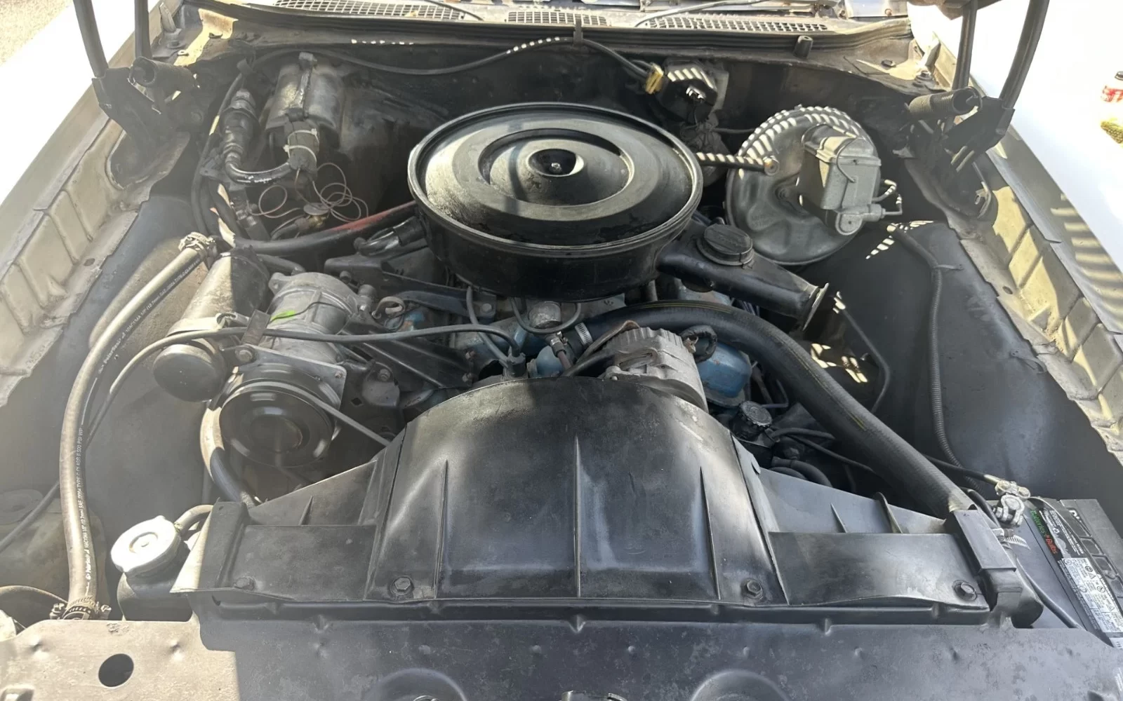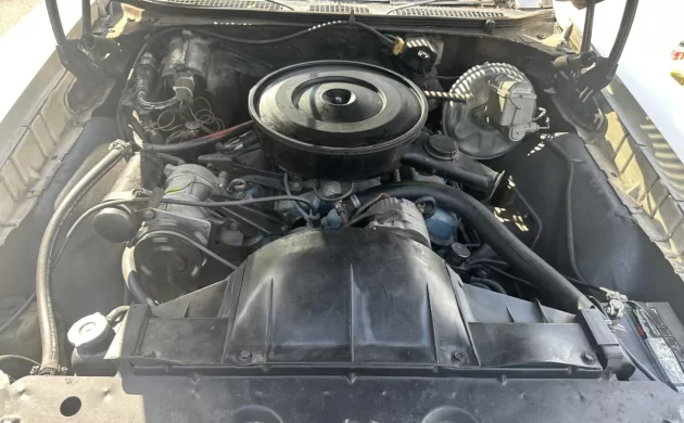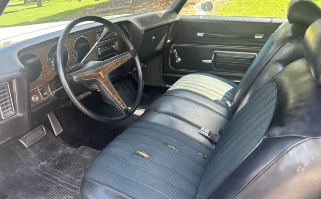 The interior is where the Luxury LeMans really stood out from the rest of the lineup, with a cloth and Morrokide (vinyl in Pontiac-ese) interior, and, quoting from the brochure, “an instrument panel with the look of rare Ceylonese teak.” That smacks of “rich Corinthian leather” before Ricardo Montalban was even hired by Chrysler. It also has the deluxe steering wheel and extra sound insulation. Being a southern car, this one has factory air conditioning, which has been upgraded with an aftermarket compressor; it “blows cold” and the “engine runs cool, without issue.” The interior itself is original, and you can see that there are a few tears in the lower cloth of the driver’s seat. I’d see what I could do to repair that without replacing the original upholstery (if anything can be done).