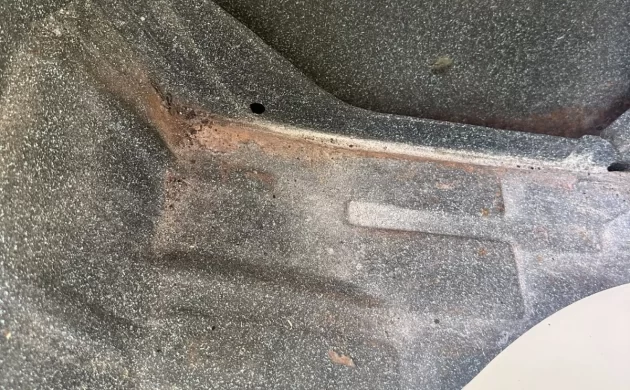 The exterior has been repainted in the original “Cameo White,” but the base was a straight, rust-free Pontiac, as evidenced by these trunk floors.
