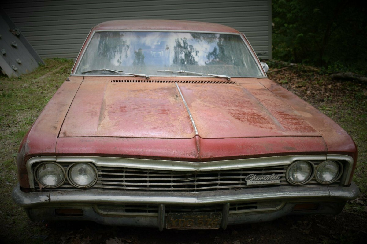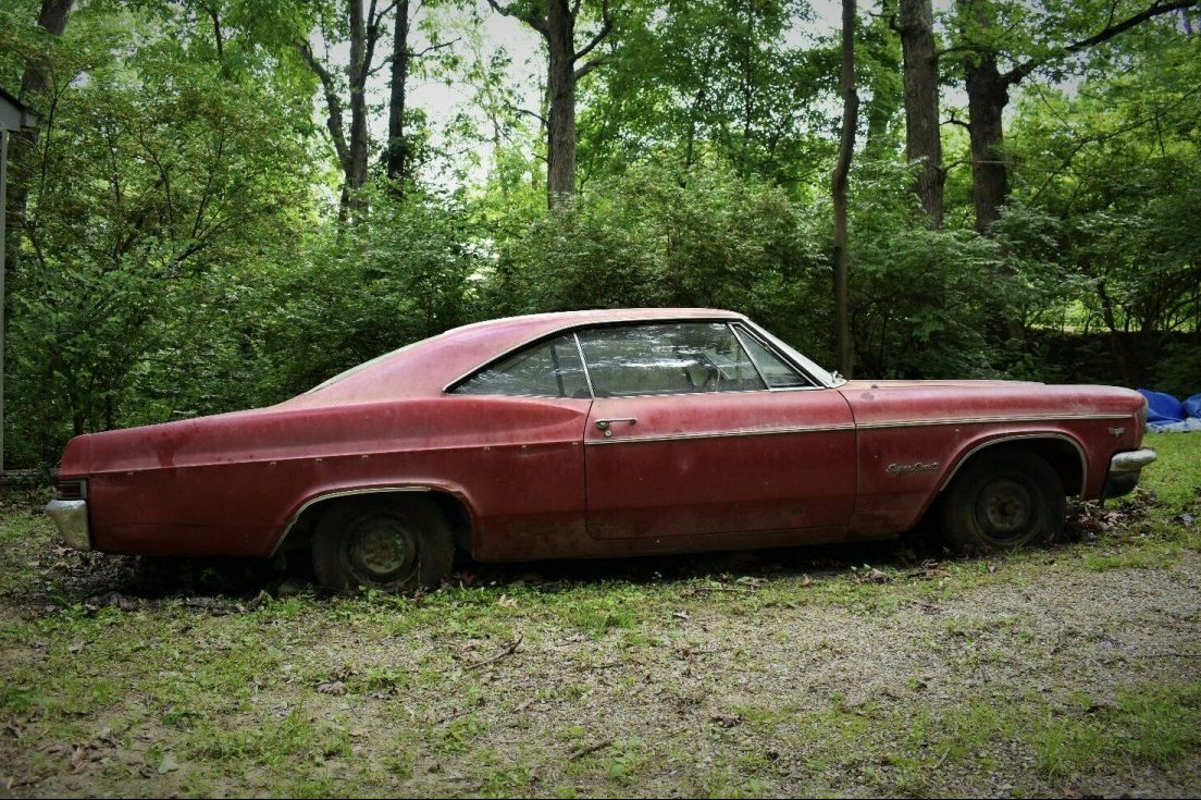 Maybe it is not too bad and the car can be saved but as mentioned, sitting on damp ground is just nasty for a car. Our neighbor bought a new1966 Impala coupe, Aztec Bronze with black interior. Nice looking car that eventually met its demise via Ohio’s salted roads but personally, like the 1965’s more. BTW, are those California Black plates on the back? If so, there might be a chance the car is better than we suspect.