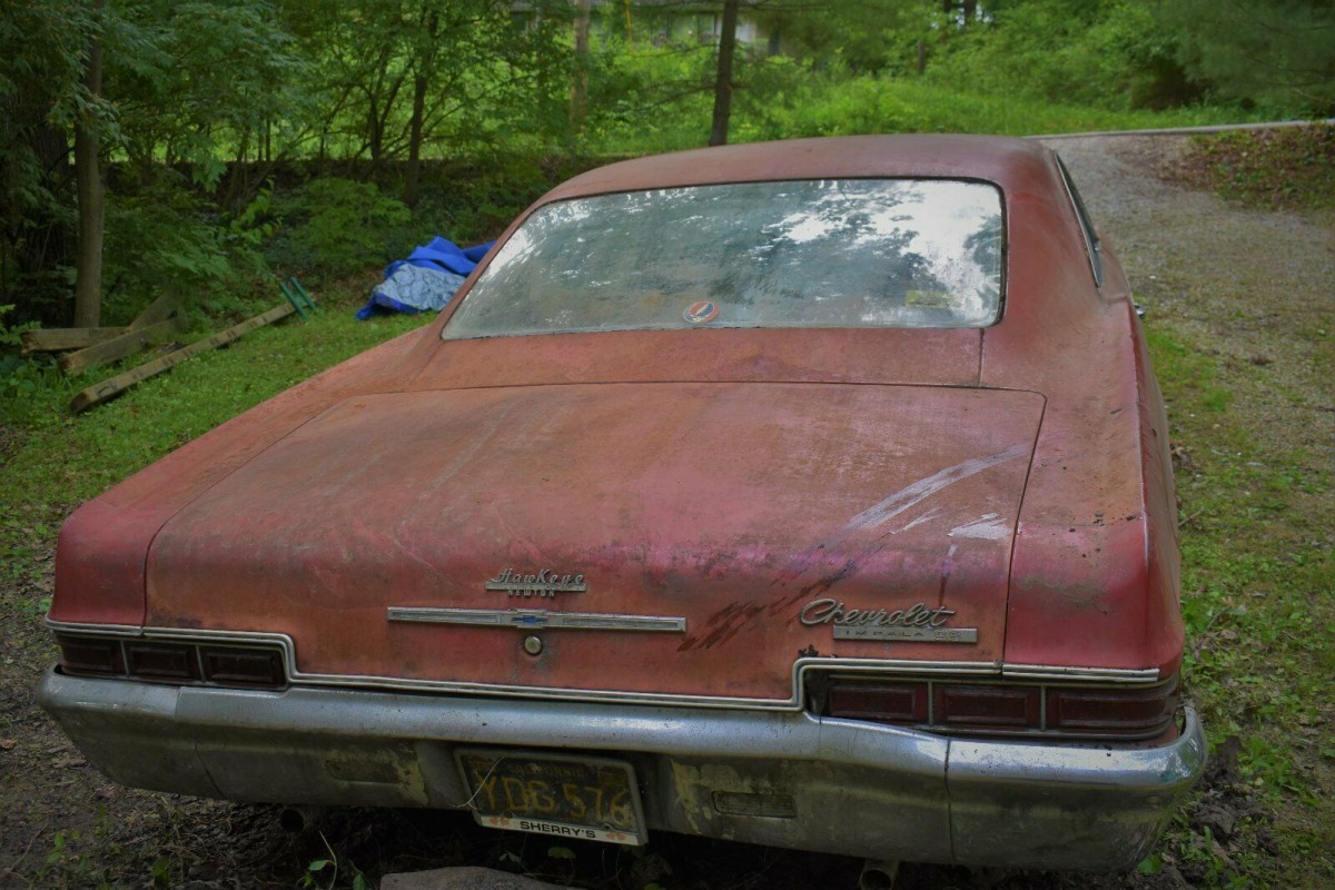 There is only one full shot of the Impala, and it does show a lot of promise. The lower fender, the rocker, and the quarter panel that we can see all look to be nice and solid. Similarly, there are no signs of rust around the rear window, which is all mighty encouraging. I really would love to get a look underneath the car, and also get it indoors pretty quickly. Where it currently sits is not conducive to the floors staying solid, so I can see exactly why the owner is so keen for someone to buy the Impala and get it under decent cover as soon as possible.