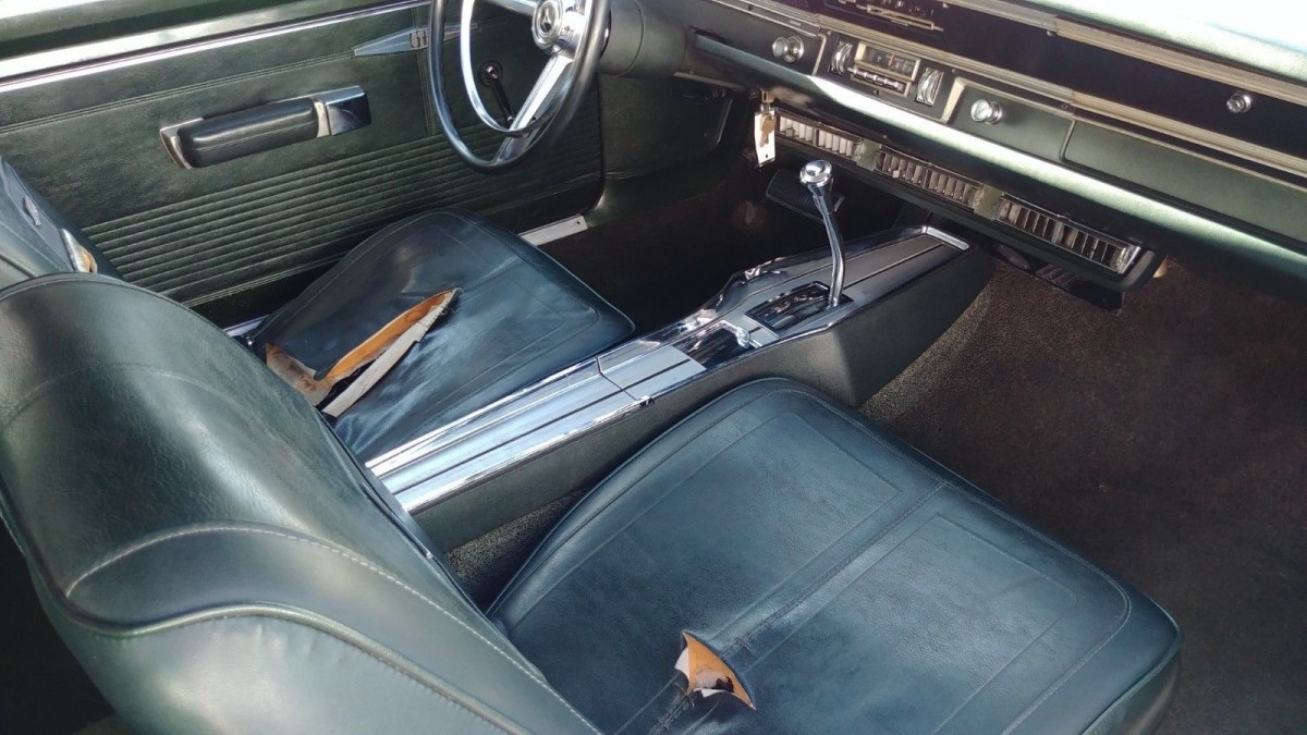 This Dart is by no means perfect, but it could be driven immediately with any restoration work being carried out when time and money permitted. The seller claims that the car is rust-free, and the provided photos seem to back this claim. There is some minor surface corrosion on the trunk floor, but the underside of this Dart looks really clean. The vinyl roof is history and will need replacing, but the seller states that there is no rust under it. There are a couple of trim pieces missing off the passenger side of the car. There appears to be a dent in the left rear quarter panel as though something has side-swiped the car, and if there is it would account for the trim issue.