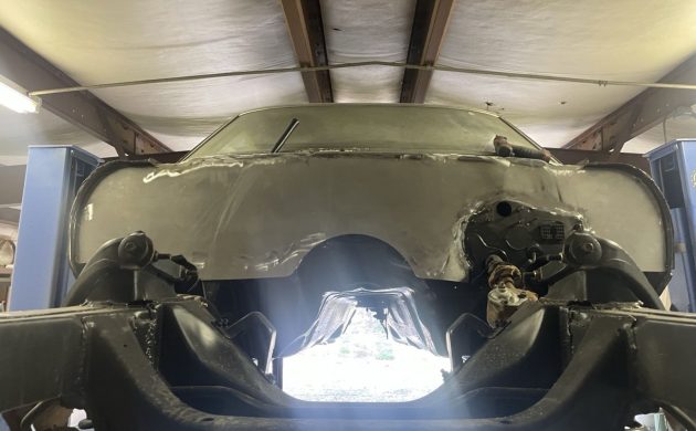 According to the seller, all the metal work has been done the right way. No bondo hiding underneath, no sketchy patches slapped on to get it out the door. The underside has been undercoated, which means the floor should stay solid for years to come. The firewall is smooth, giving the engine bay a cleaner look once a motor goes back in. A complete front clip comes with the car, which is a big deal since sourcing one can be a project all by itself.
