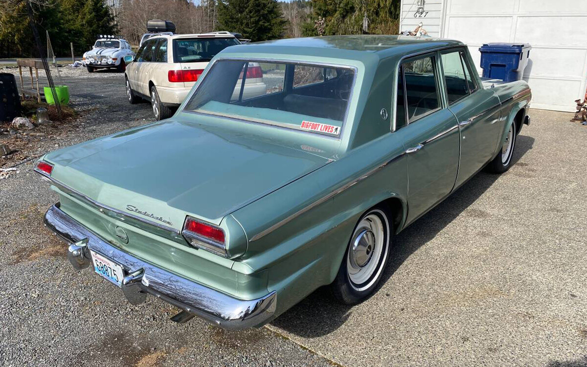 Driver’s seat has been reupholstered, but the car appears pretty good to my eyes, as far as looking authentic. People seem to forget that these cars were marketed and priced against the similar-size cars like Falcon, Chevy II, Valiant, and Rambler. I think the styling has stood the test of time better than any of those, and the instrument panel is padded top-to-bottom unlike the others, and the instrument lenses are glass surrounded by chrome metal, not plastic which was chronic in everybody else’s cars then. Low production numbers, and the ’64’s are the last year built in the U.S., and it’s an affordable, interesting old car IMHO.