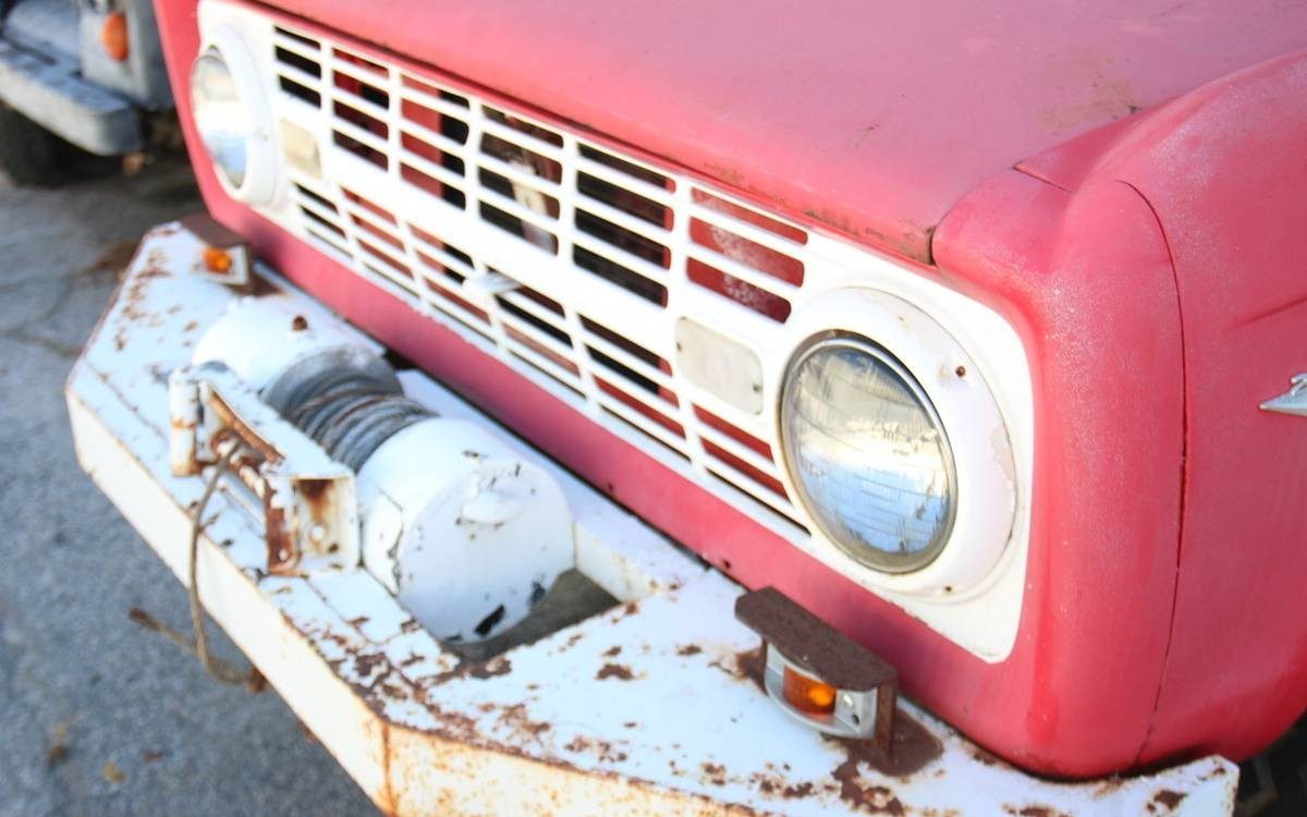 The front bumper is a beefy piece that houses an old-school winch. Overall, this looks like a really solid project and would be a great survivor to restore. What is your favorite configuration of Bronco? Roadster, wagon, or half-cab?