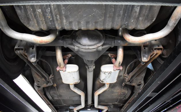Glossy black paint looks great from a distance, but there’s something odd about it in the close-ups, like an owner-painted acrylic enamel with massive orange peel rescued later by arduous color-sanding. However, that’s just a guess. It looks great from a distance, which also describes the bumpers and trim.