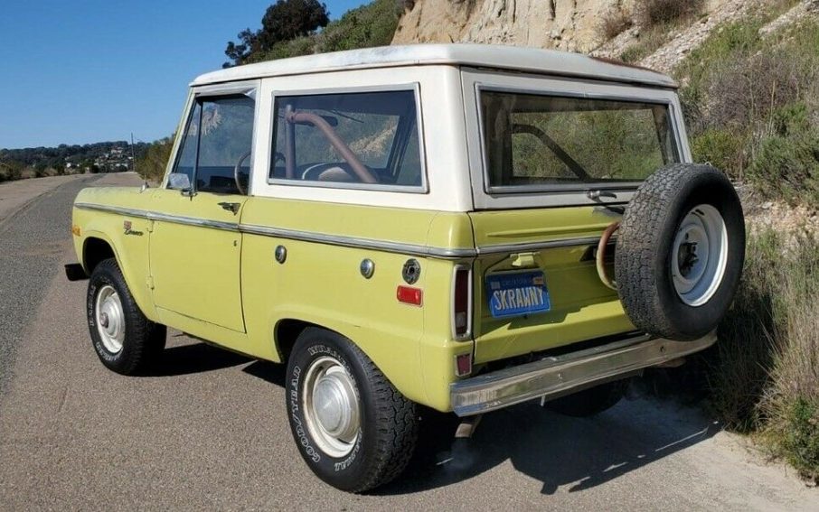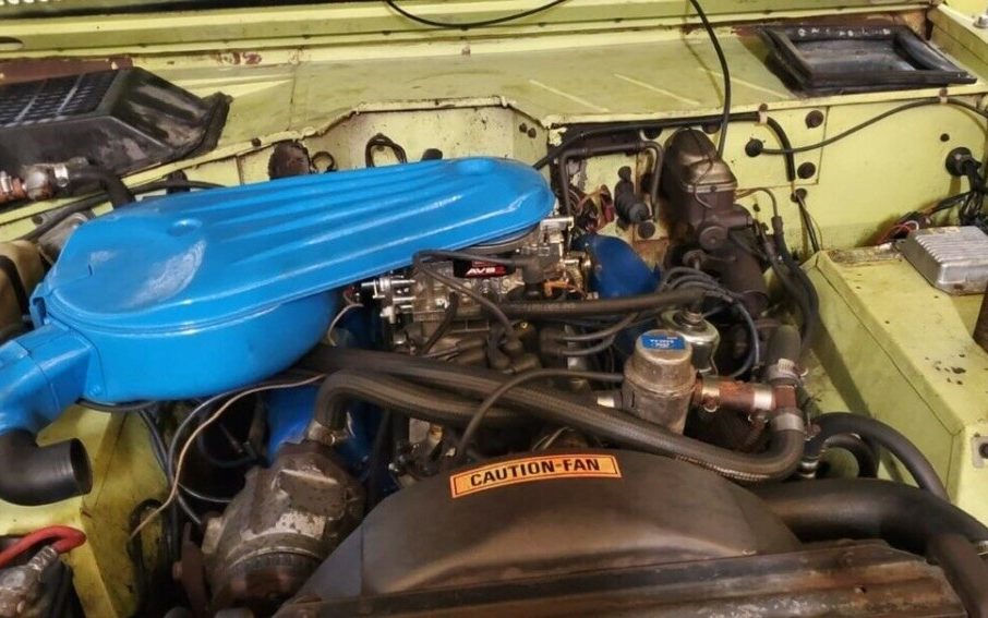 A big issue with first-generation Broncos is rust. The floor pans, rockers, and other parts usually show some signs of rust and can be extensive and expensive to repair. But with this one, the front floors appear to be solid with just a bit of surface rust. The rear part of the floor tub looks good as well. Other than a billet steering wheel, the interior appears to be all original but the seller does say the front seats have been rebuilt with new foam and covers. The rear seat looks just fine and wouldn’t need anything more than a cleaning. The dash pad has also been replaced and looks great.