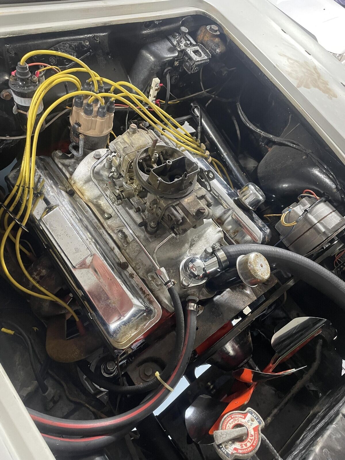 The car should have a rectangular “louvered” hood section and no scoop. That said, this customized hood looks good on the car. Other fiberglass work has been performed, in a driver-quality manner without proper finish work on the underside of the repairs. In this walk-around video, the seller discusses the bodywork, the suspension, the parts that come with the car, and more. One charming feature is the 1958 “Land of Lincoln” license plates.