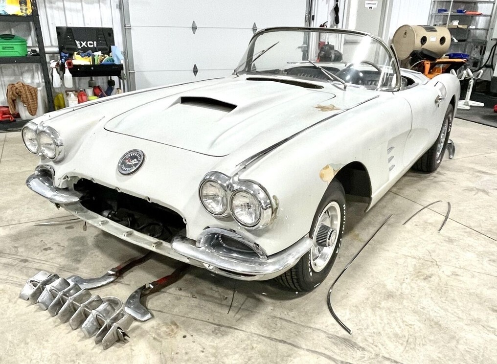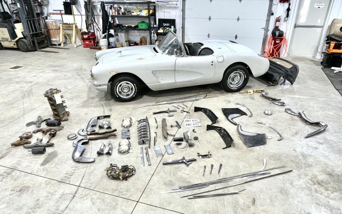 The first generation C1 Corvette series was introduced in 1953 and ran through 1962. Made of fiberglass to keep production costs down, early cars shared an in-line six-cylinder with every other Chevy model, but there the resemblance ended. With higher compression, a high-lift camshaft, and three Carter carburetors, the Corvette’s version of the 235ci six managed 150 bhp. Its long hood and convertible configuration were also nothing like the ubiquitous Chevy sedan of the day. As the Corvette evolved, a V8 became standard fare in the engine bay, and by 1958 the body was embellished with dual headlights, nonfunctional air scoops, fake louvers on the hood, and a chrome-trimmed decklid. Considered gaudy by some aficionados, the 1958 still sold extremely well. But Chevrolet listened, and the styling was toned down in 1959, making the ’58 a standout in the lineup of C1s. Here on eBay is a 1958 Chevrolet Corvette ready for reassembly, with an asking price of $52,500. This car was stored for forty years as a partially finished restoration. It is located in Saugatuck, Michigan.