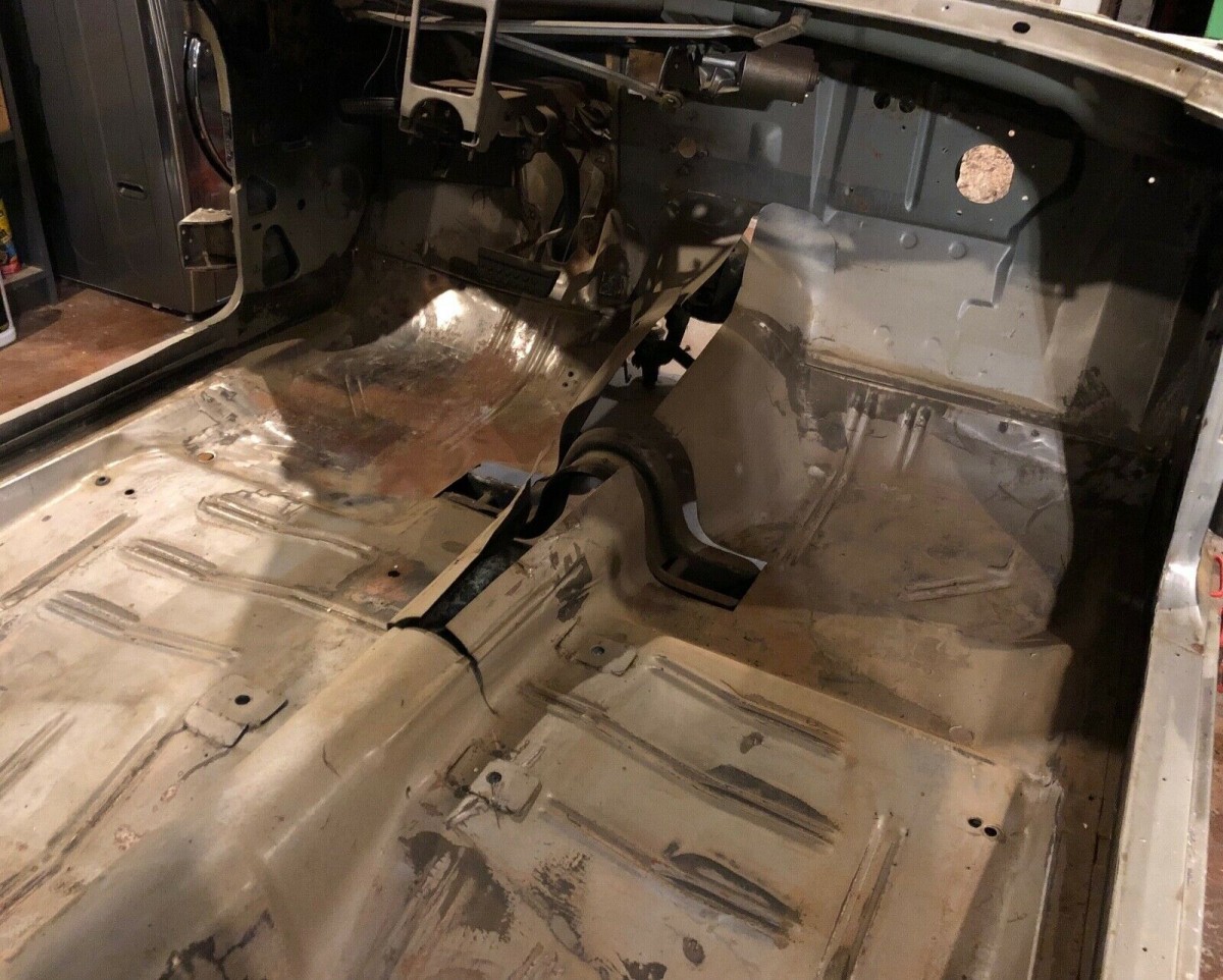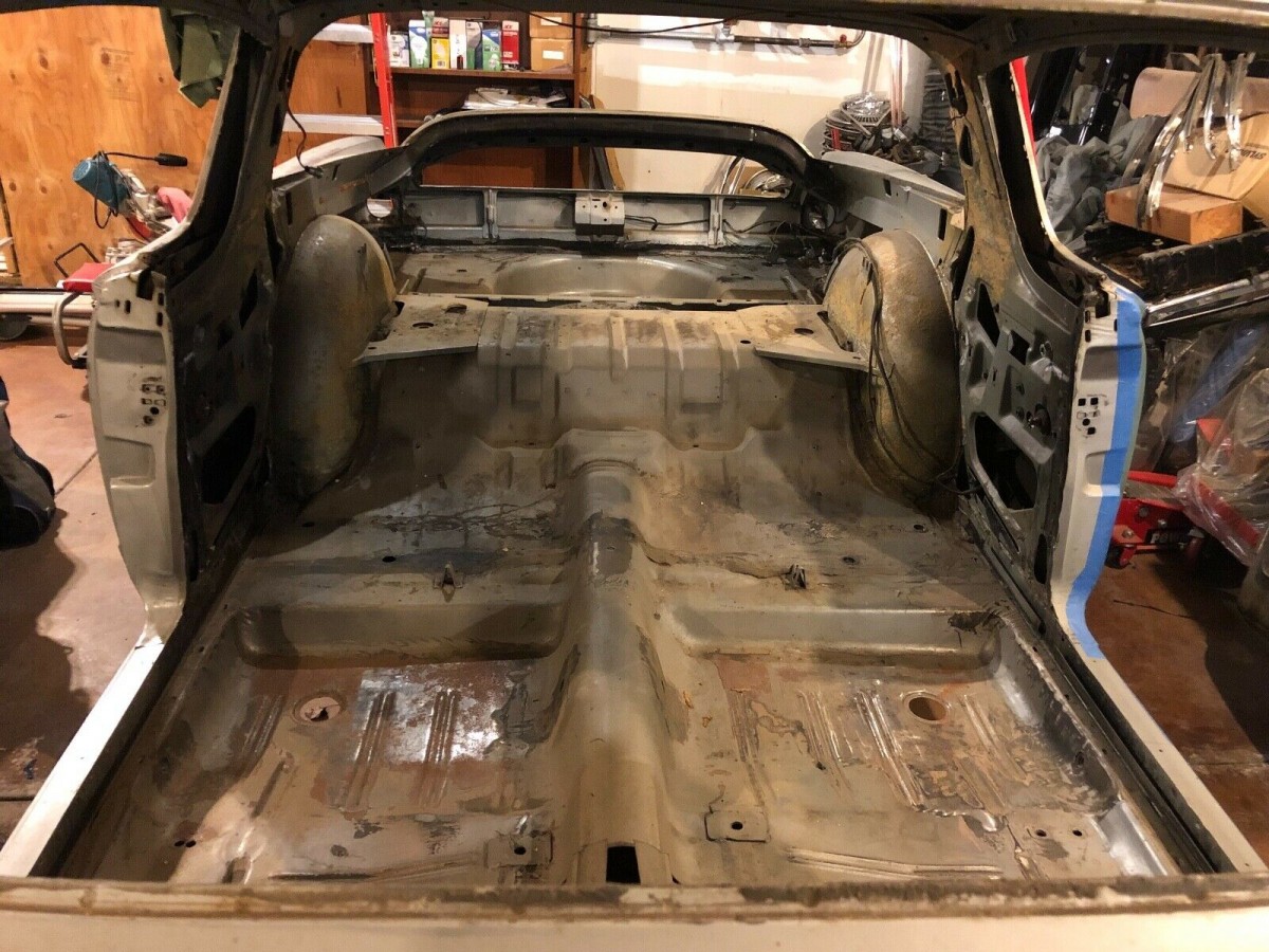 A lot of people tend to shudder when they see a car that has been dismantled to this stage, but this particular car actually might not be that bad. The owner says that he has meticulously bagged and labeled every part removed from the vehicle and that the bags are all sealed. Hopefully, this means that when the point comes where the car is ready for reassembly, everything should be there. Of course, there are no guarantees, but this at least shows some promise. Speaking of showing some promise, the body of the Barracuda certainly does this. The car has spent its entire life in California, and apart from a few spots of surface corrosion, it looks really good. The floors look nice and solid, and there is no external rust visible in the usual spots such as lower quarter panels or the rockers.