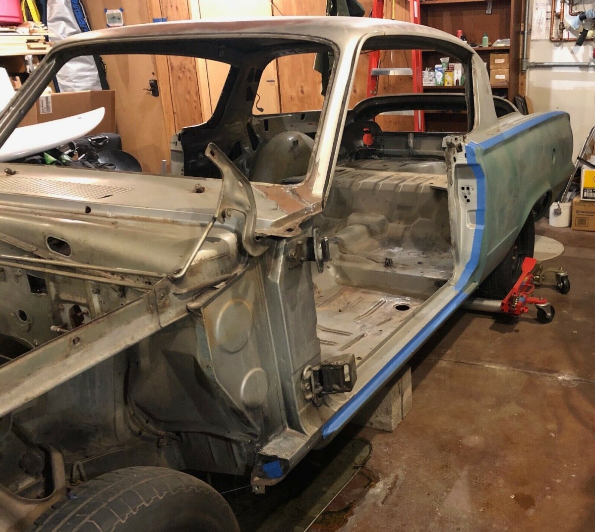 I saw that engine in the background too. It could be a late model Hemi, the transmission tunnel surgery isn’t uncommon when converting to late model overdrives. He’d do better to offer this car with the late model drivetrain, but then again, it’s not outside of the realm of possibility that he purchased the car as an unfinished project just for the drivetrain. I’ve done that, bought an unfinished project, stripped out the engine and transmission, swapped out the rear end, then sold the body as a roller. It can be an economical way to get expensive components.