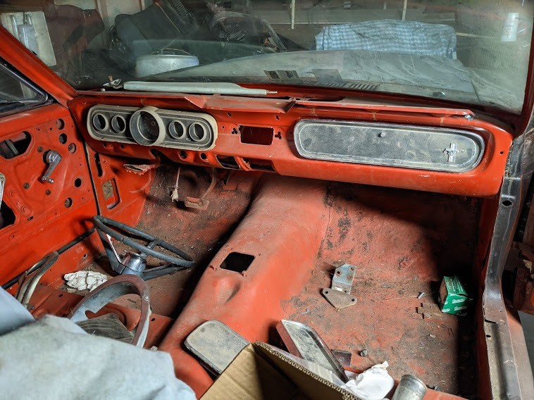 From what we see of the red interior, it was photographed in various stages of disassembly. There are some black interior pieces that may have been with the car or were intended for the car in the future. The door panels and floor coverings have been pulled out and the metal there all looks to be good. This Mustang is said to have come with a 289 V8 and an automatic transmission, but neither are in the car now. A 289 will come with the deal, but it’s not stated whether it’s original to the Ford. The motor is in the process of being put back together, but we don’t know if they will finish the work before they perform the handoff to the buyer.
