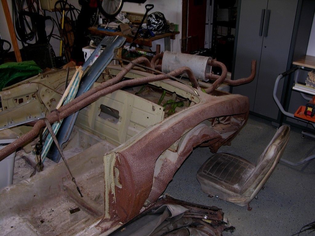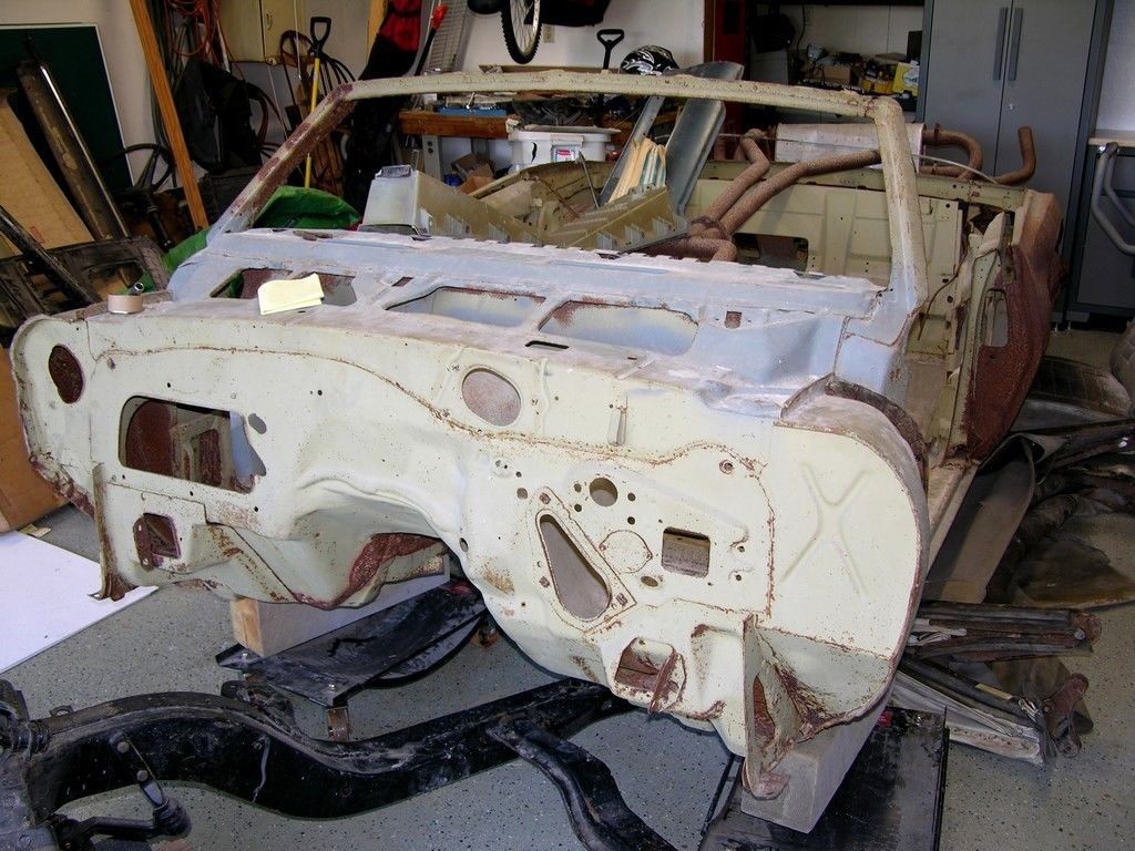 The next thing to consider is the shell. From the way that I interpret the ad, the car was disassembled and the shell dipped and primed some 30 years ago. It has been in storage ever since. I think that it’s stating the obvious, but I suspect that this needs to be returned to the dip. There’s just enough corrosion in awkward places to rule out soda blasting. I’m not a fan of having to dip a shell more than once, but I can’t think of an alternative.