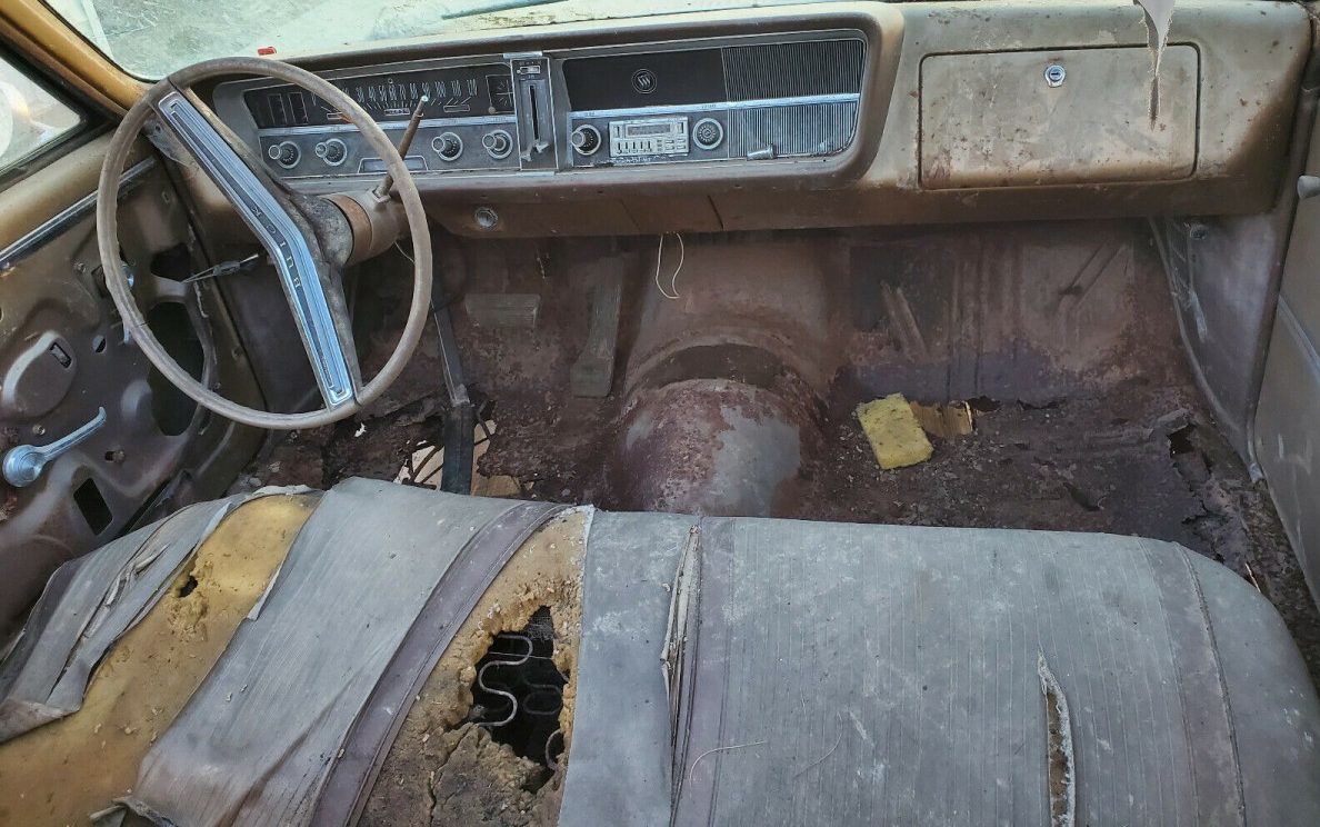 In a nutshell, this Special is shot! Besides all of the surface rust and body panel rust-through, the front end of the frame is passing through the cinders stage and returning to some version of its natural, metallurgical state. It’s a common problem for A-Body perimeter frames when exposed to the wrong elements for extended periods of time, and being a Wisconsin car (road salt), explains it all. The seller suggests, “it is very rusty. could it be restored? well yes if you through (sic) enough money at it, otherwise it’s a very good parts car. the convertible parts will fit other gm cars like the Chevelle, Cutlass, and GTO“. Restorable if you replace everything maybe, I question the value of this pile as a parts car.