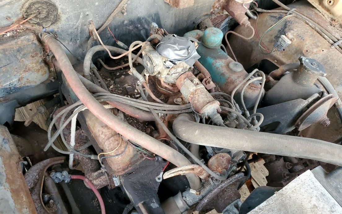Wow! That’s a lot of rust, bent parts and neglected everything on this uh, car? This is one of those remove the radiator cap and replace with new car, except the radiator cap is no good either. I’m not sure this is even good as a parts car.