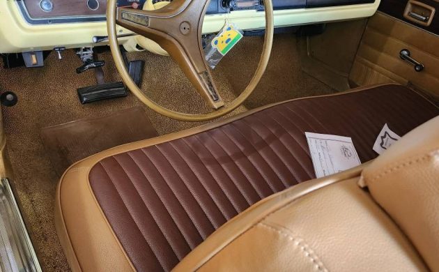 For a car that goes to shows and has won at least one award, the seller makes no real effort with photos. They’re all closeups in the garage (except one), and none are of the engine. It appears to be a solid car, and the Sunflower Yellow paint could be original. We’re told the interior is brand new, and it looks quite good. But the Plymouth has traveled 148,000 miles, so things do wear out.