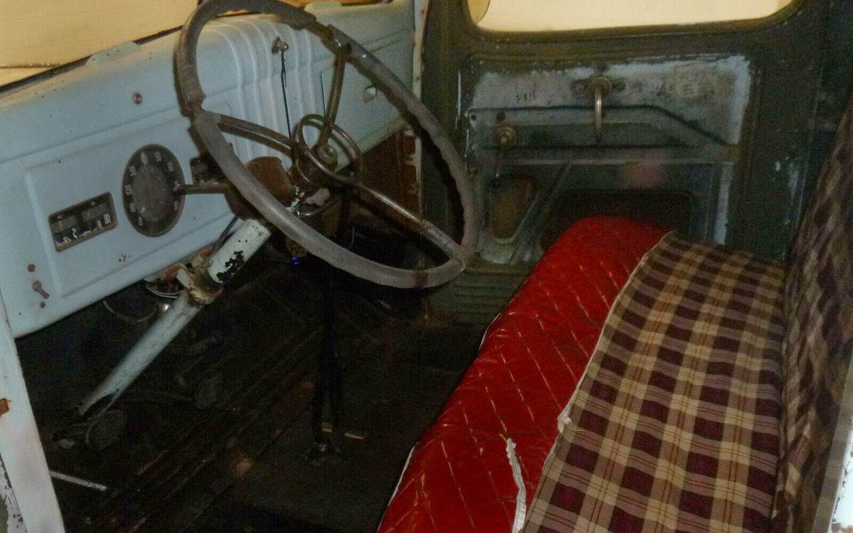 There was a Plymouth TrailDuster based on the Dodge Ramcharger in later decades and a rebadged Mitsubishi pickup, the Plymouth Arrow, and now there isn’t even a Plymouth anymore, what a shame. Back to this particular truck. You can see that the interior looks good, or mostly solid other than some soft surfaces that could use some help. The steering wheel has pinched-fingers written all over it, I’d want to restore that and get some simple door cards and a new seat cover, but otherwise, it looks usable as-is. They mention that it has new wood in the bed and the current owner got it from a 76-year old pastor.