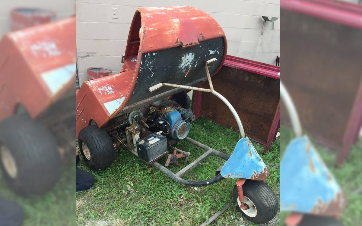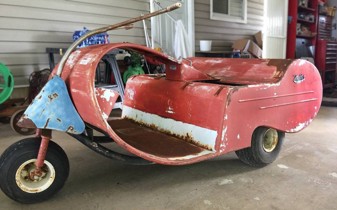 I’d have no use for it other than maybe cranking around the neighborhood, but dang that is some 1950s cool and it would be fun to restore. Overpriced though.. If I blew the engine I could put one of my HiPo 2 stroke kart engines in it and end up doing some barrel rolls.