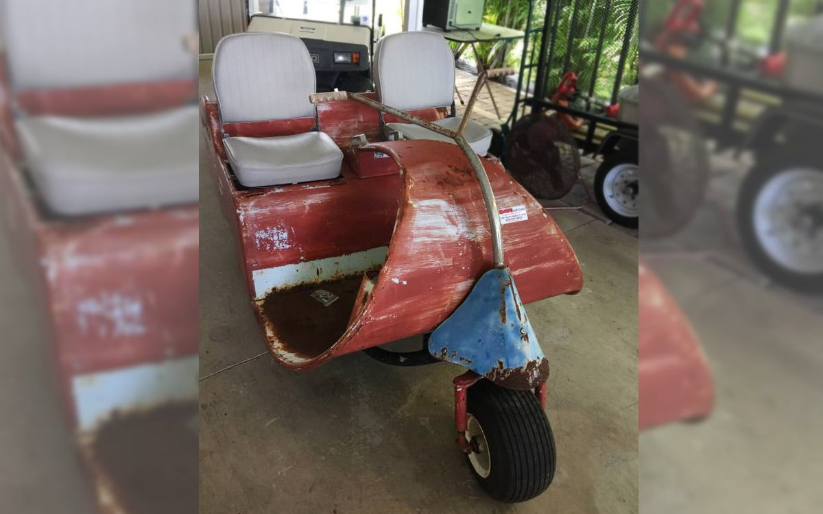 Without a doubt, one of the most unique and just plain coolest designs for a golf cart maybe ever, this 1950s Walker Executive Golf Cart is about as rare as it gets. If you’re a golfer who wears your pant legs tucked into your socks, this is the cart for you. The seller has it listed here on craigslist in an area that knows a thing or two about golf courses: Fort Myers, Florida and they’re asking $4,000. Thanks to Ikey H. – who oddly enough also wears his pant legs tucked into his socks – for sending in this tip!