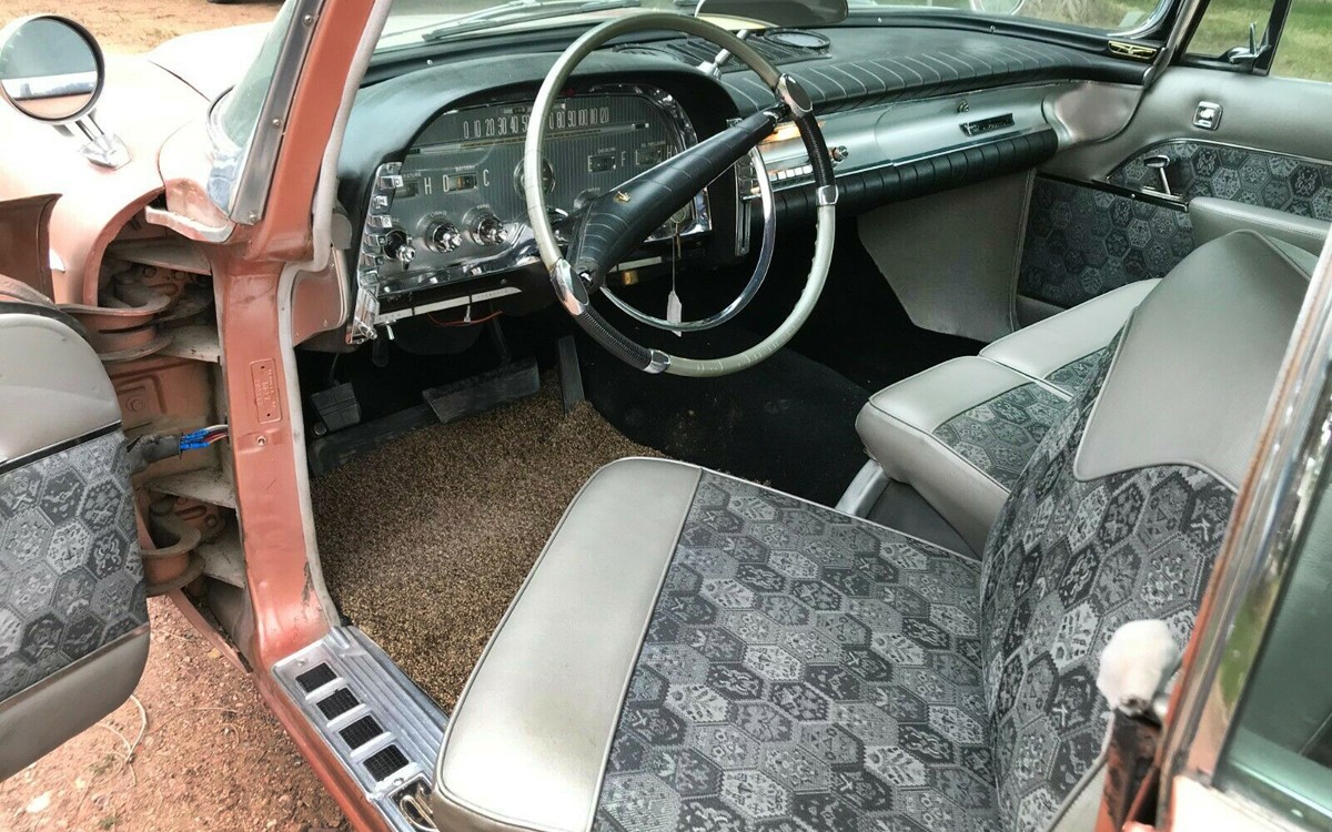I have to keep going: First Man Into Space and Have Rocket, Will Travel. Ok, that last one doesn’t quite live up to the incredible standards of a 1959 Imperial. Check out this interior, it’s out of this world! The seller mentions that the fabric isn’t stock but is period style and that it is. I like it and it looks like the whole interior is in nice condition. The trunk also looks nice and it’s huge. This Imperial is completely rust-free according to the seller.