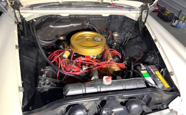 In 1959, the new Sport Fury sat atop the Plymouth hierarchy over the Belvedere and Fury. It was only offered in two body styles befitting a “sporty” car: a 2-door hardtop and convertible. Cars like this were treated to a new engine, the Golden Commando, displacing 361 cubic inches and 395 ft.-lbs. of torque. It was offered with a 2 or 4-barrel carburetor (the seller doesn’t mention which sits below the air cleaner).