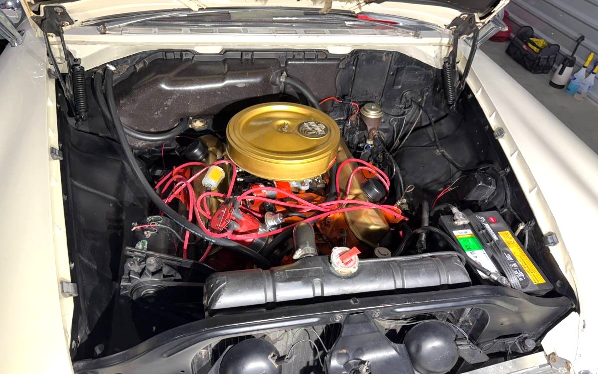 According to the air filter sticker it has the “Golden Commando engine” : 4 bbl Carter, dual exhaust and 305 HP, the same power as in 1958 but with a single carburetor.