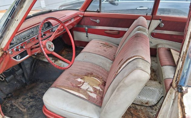 As the story goes, this ’61 Ford belonged to the father of the seller’s friend. He had it for years and years, and the seller took possession to undertake a restoration. But health issues have gotten in the way, and that won’t happen on his/her watch. The machine is mostly rust-free if you exclude the obvious surface corrosion and the trunk pan. The interior is original and is about as worn as they come, so new upholstery, carpeting, and a headliner are needed.