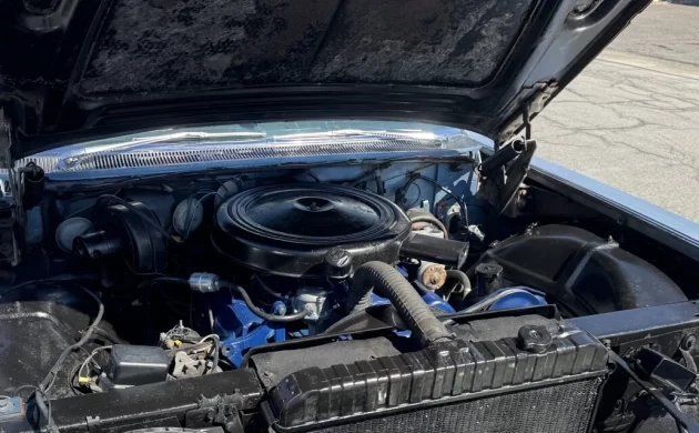 “Interior was redone at some point,” states the listing, and that appears to be the case. But while the upholstery is clean and in sound nick, it does not look like the original pattern or material. It (seats and door panels) is all very nicely tied together, and the carpet, too, shows as new; it’s just not what one would expect in a Cadillac Sedan deVille of this era. From what can be seen of the instrument panel, there are no issues there, though the dashpad has seen better days.