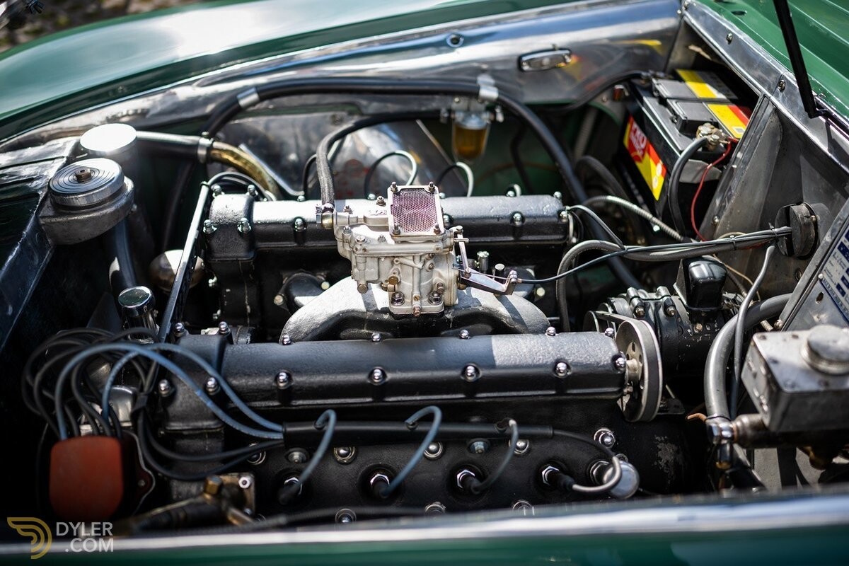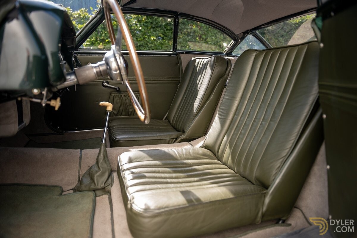 So technically advanced for the time. Sodium filled exhaust valves and what looks to be hemispherical combustion chambers. You would think the 2 choke carburetor would be a limitation in this design. I also like how the wheel housings open up to merge with the fenders. Looks like aerodynamics were also a key factor in the design. I really like the interior as well with the dark green dash and the olive colored leather. Very tasteful.