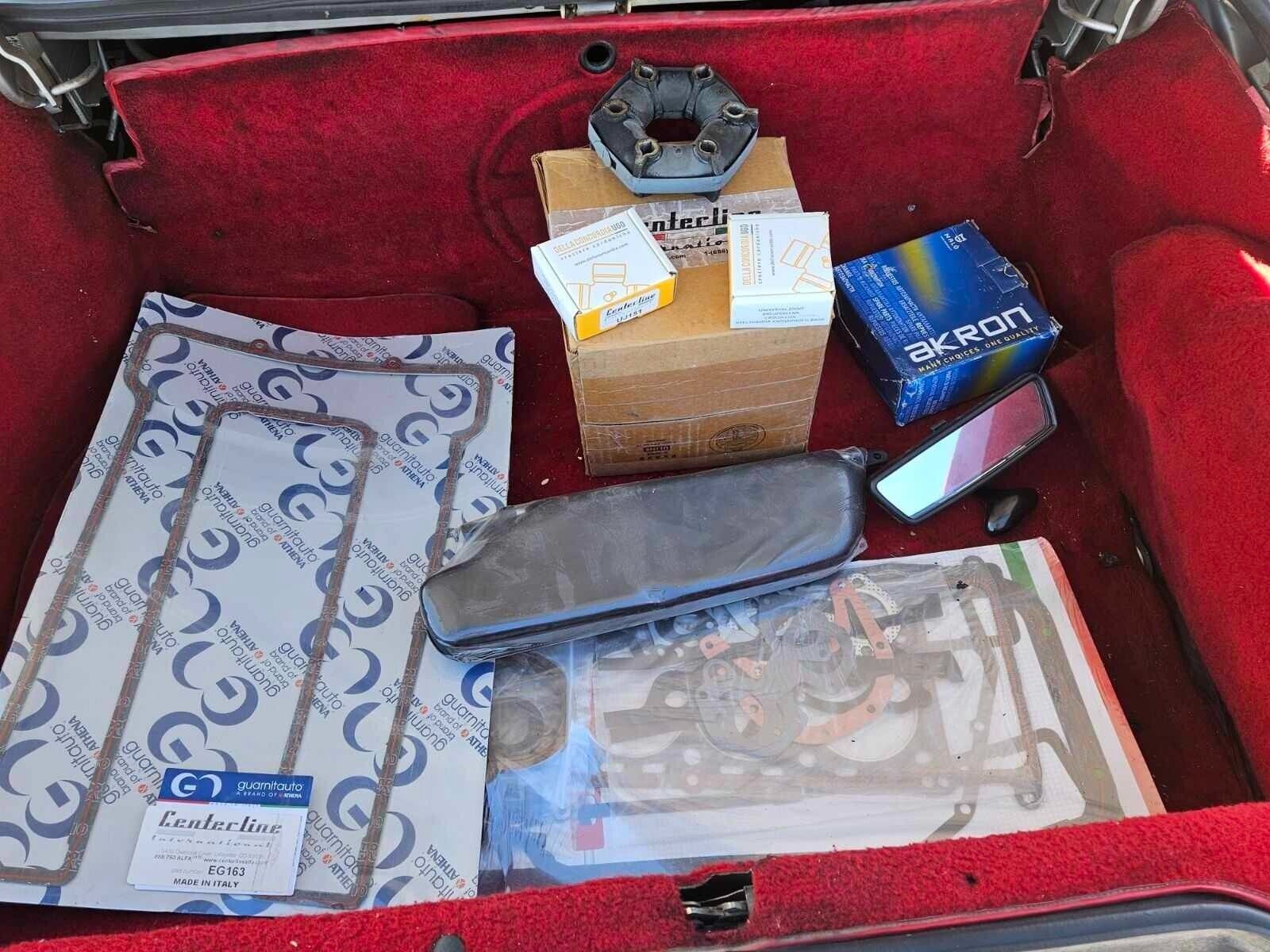 Now, this Alfa has a variety of new parts in the trunk, including a gasket kit from Centerline which is far and away considered the Alfa spare shop of choice here in the U.S. So, someone was caring for this Spider at one point in time, which is a good sign. However, you also have to wonder if these were bought just for basic tune-up reasons or if there’s some bigger jobs lurking. Certainly, a valve cover job is no big deal, but I’m curious what all theĀ otherĀ gaskets are for. Regardless, this will sell cheaply, so get some bids up there if you’re on the hunt for a Spider project.