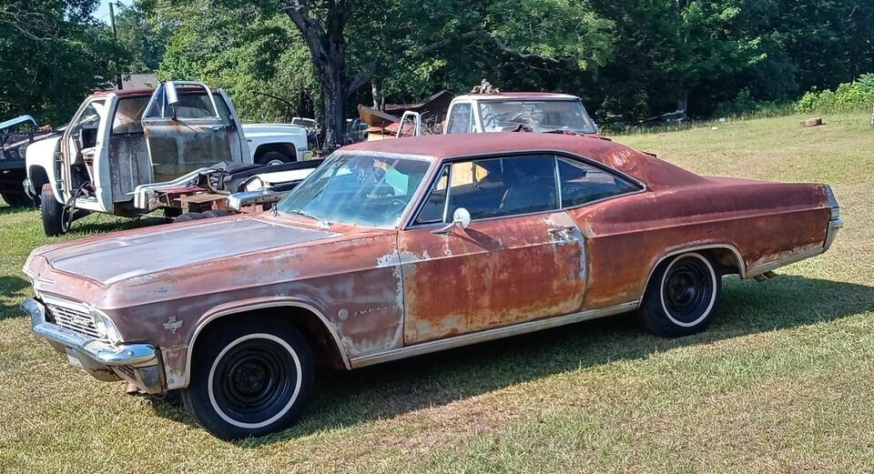 The 1965 model year was a banner one for Chevrolet. They would see 1.2 million full-size cars produced for the first time, and the Impala comprised more than 800,000 units. While you saw these cars virtually everywhere back then, you rarely saw one painted in Evening Orchid, a purple-ish color that was unique to 1965. It’s estimated that less than one percent of all Chevies came in that hue. This Impala is a 3-owner car that was purchased for restoration, but the seller realizes this won’t happen anytime soon on his/her watch. Located in Kellyton, Alabama, this Bow-Tie project is available here on eBay where the bidding holds at $2,400.