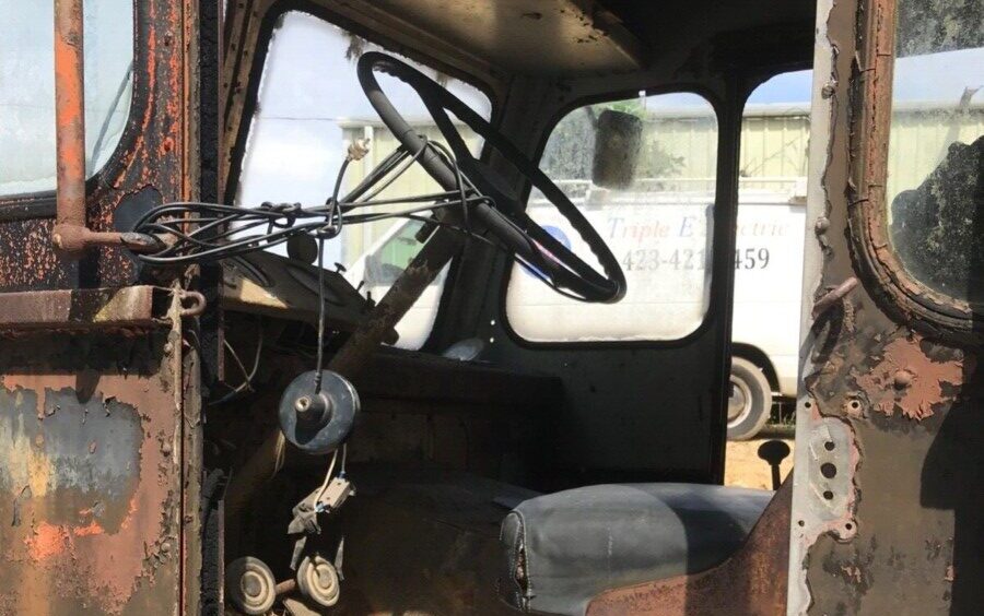 No word on what the motor is, but it’s likely stuck, or perhaps housing the critter that’s nested near it. Some parts are not present, and given the paucity of information on these, it’s going to be hard to know what should have been in this engine bay. I did find another Hahn UPS van, and it came with a GM 223 cu. in. The seller does indicate the van has a manual transmission. No idea if it rolls or steers.