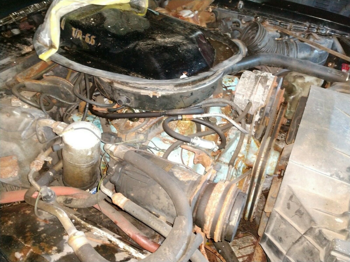 The owner says that the black paint on the Trans Am is original, and the car is in decent condition for its age. We can’t get much of a look at it, so it is difficult to assess how much rust may be present in the vehicle. The gold trim around the headlamps, along with a few other items indicate that this is actually a 1978 Trans Am Special Edition. It is fitted with a Hurst T-Top, which makes it 1-of-2,856 automatic SEs built with that top in 1978. That doesn’t mean that it is especially rare, but those numbers are low out of a total Trans Am build of 93,341 cars in 1978.