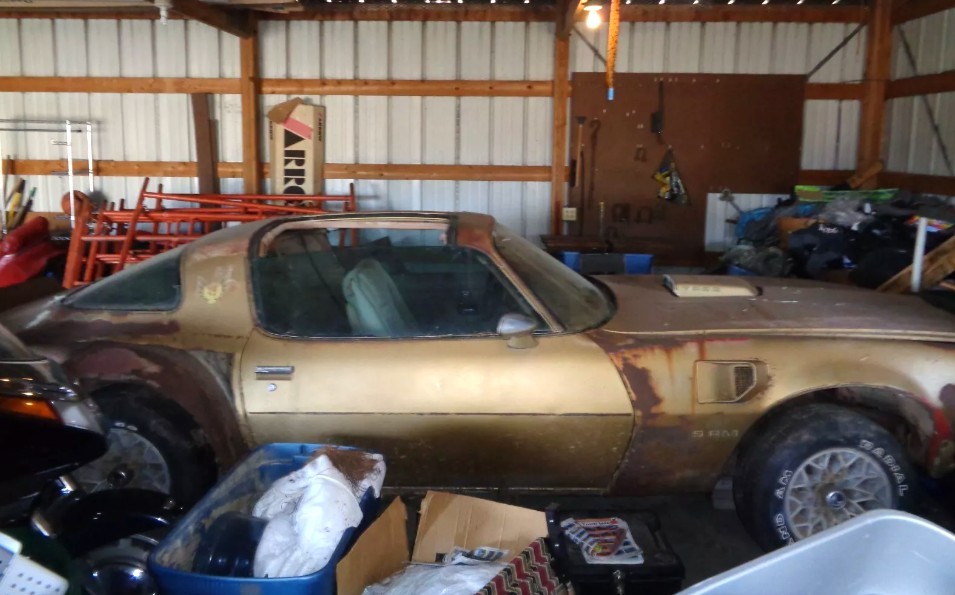 Despite all the hoopla over black Trans Ams after the movie’s release. Pontiac still had time to come up with the Gold Y88 cars. They were only offered in 1978, and the performance machines came with a 400 cubic inch W72 V8 engine, a 4-speed manual transmission (automatic optional?), and a W56 handling package. We don’t know the story of the seller’s rare car, but we assume it stopped running, was tucked away in a barn, and then forgotten about for who knows how long.