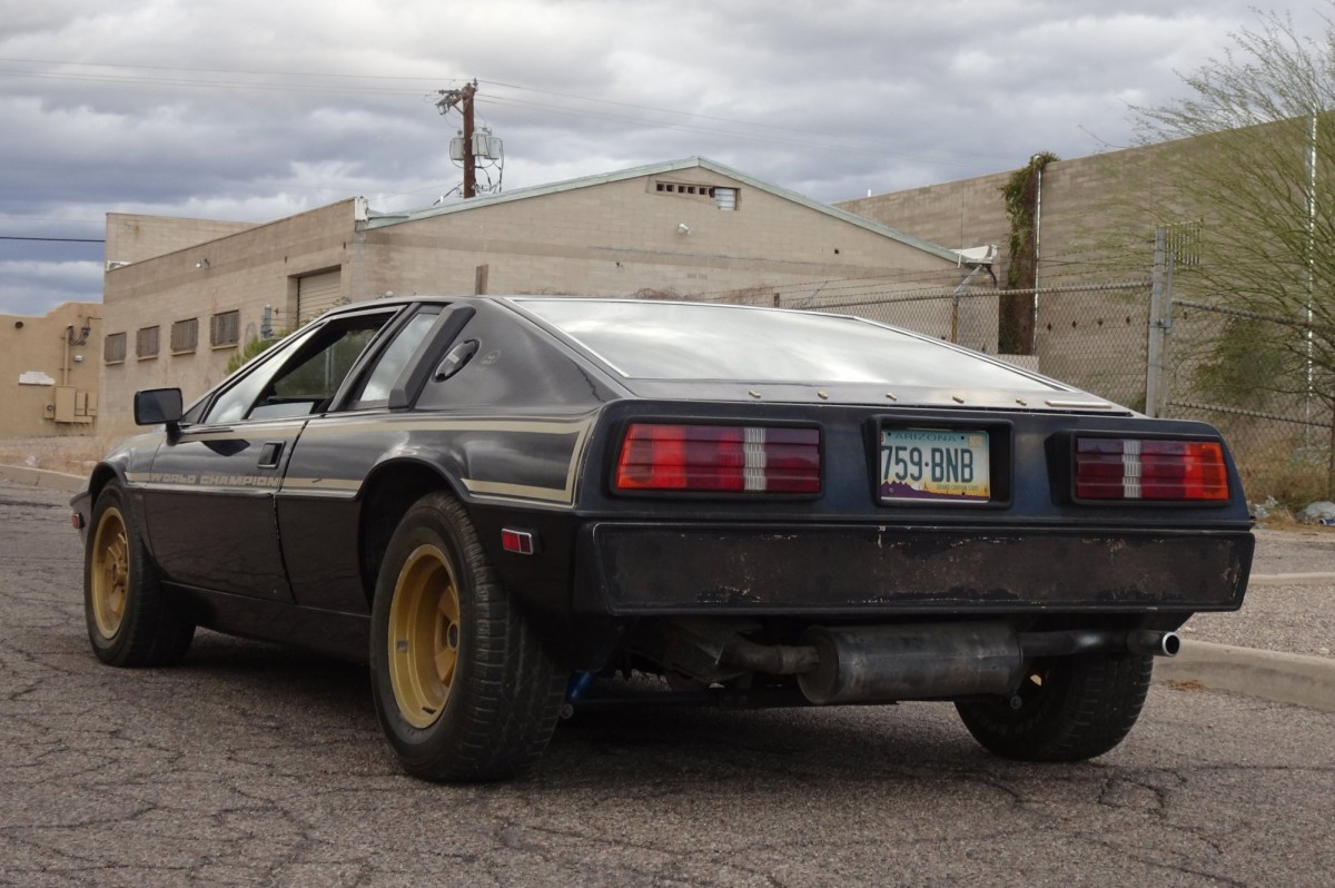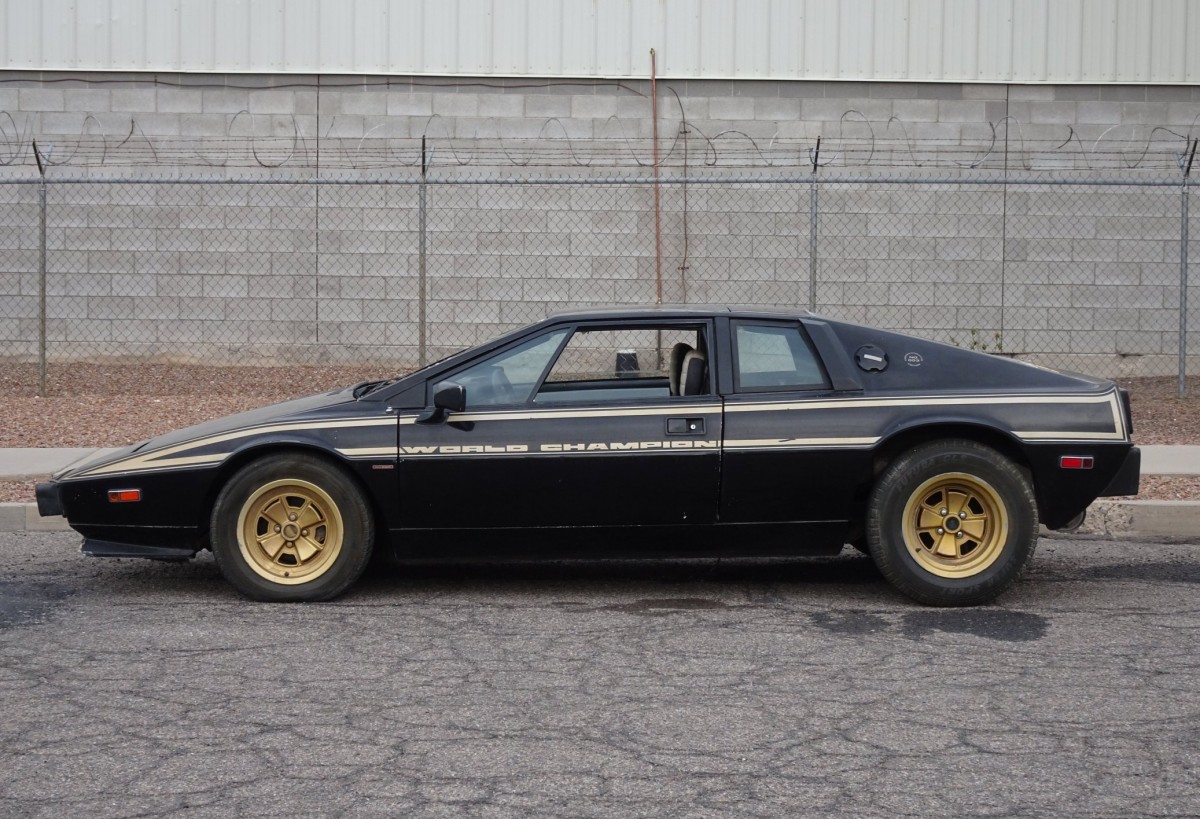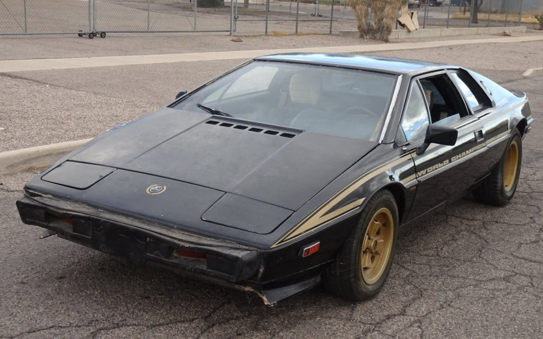 1978 was an important year in the history of Lotus: Mario Andretti won the Formula One World Drivers’ Championship in the Lotus 79. With teammate Ronnie Petersen, Lotus also won the Constructors’ Championship. To celebrate the “double,” Lotus built a limited edition of 100 Lotus Esprits in their iconic John Player Special livery: the 1979 Lotus Esprit JPS Commemorative Edition. This particular Esprit, number three of 100, is said to have been sold new in Arizona and is now listed for auction here on eBay with a current high bid of around $11,000 and six days remaining.