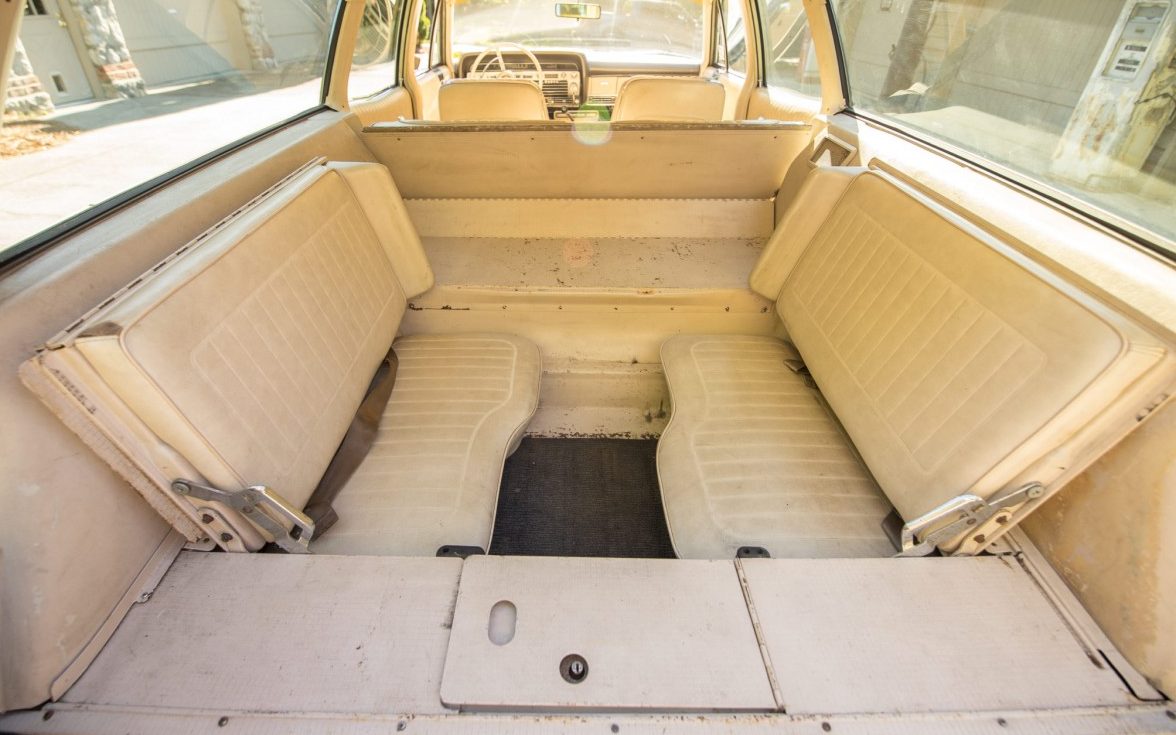 The parchment interior appears to be original and in rather good condition. The special-order bucket seats and console almost make you forget your sitting in a woodgrain-adorned station wagon. Apparently, the original buyer of this Country Squire wanted to be comfortable while going fast, as they opted for power steering, power brakes, power windows, AM/FM radio, and air-conditioning – which is currently inoperative.
