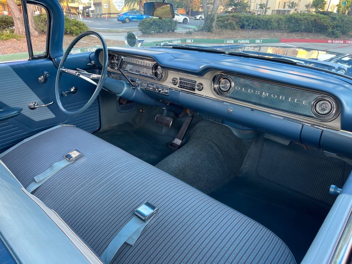 My parents traded in their 55 turquoise and white Olds convertible on a brand new 1960 Olds Dynamic 88 hardtop in blue on blue but it must have been Dresden blue, the other shade offered that year. I was only 5 years old but remember going to the dealership with them to pick it up. This is the nicest 60 olds I have ever seen. Here is a link to a YouTube video of this exact car for sale by the selling dealer. I’d love to have this.