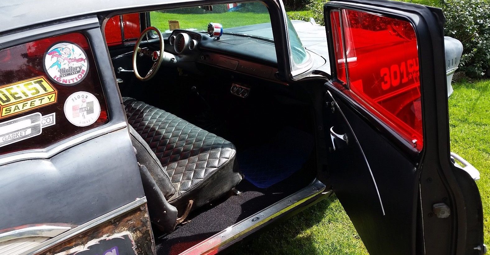 It’s funny: these days we tend to poke fun at the young driver with stickers all over his car, seeming to indicate his 2009 Civic is sponsored by Spacro or Nardi. Truth be told, stickers on a project car is nothing new, as this 1957 Chevy 210 shows us. Of course, back in the day such “endorsements” actually sent a message when you rolled up on the drag strip, usually one of intimidation. This 210 comes with “Bel Air trim” and looks all sorts of fierce. You’ll find it here on eBay with a $16K Buy-It-Now.