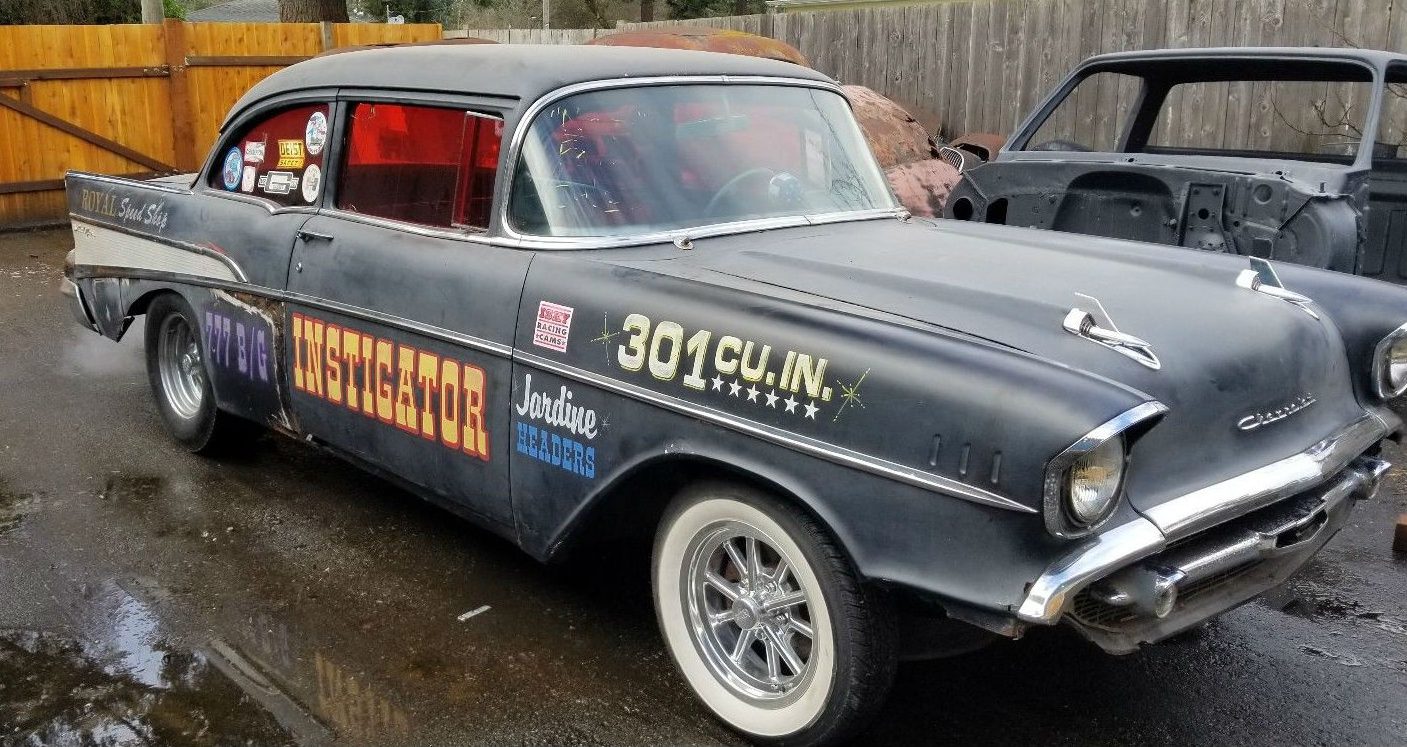 The SBC under the hood is said to come with “…a great cam lobe and good power; also has a quiet gear drive, Saginaw 4-speed and ’57 rear end.” This 210 features a surprising assortment of new and replacement parts along with the components needed to sort out the body issues. The trick is going to be preserving that awesome exterior while still cutting out the bad and replacing with clean metal. The Buy-It-Now seems high to me, but bidding is active. Where do you think this Speed Shop warrior will end up?